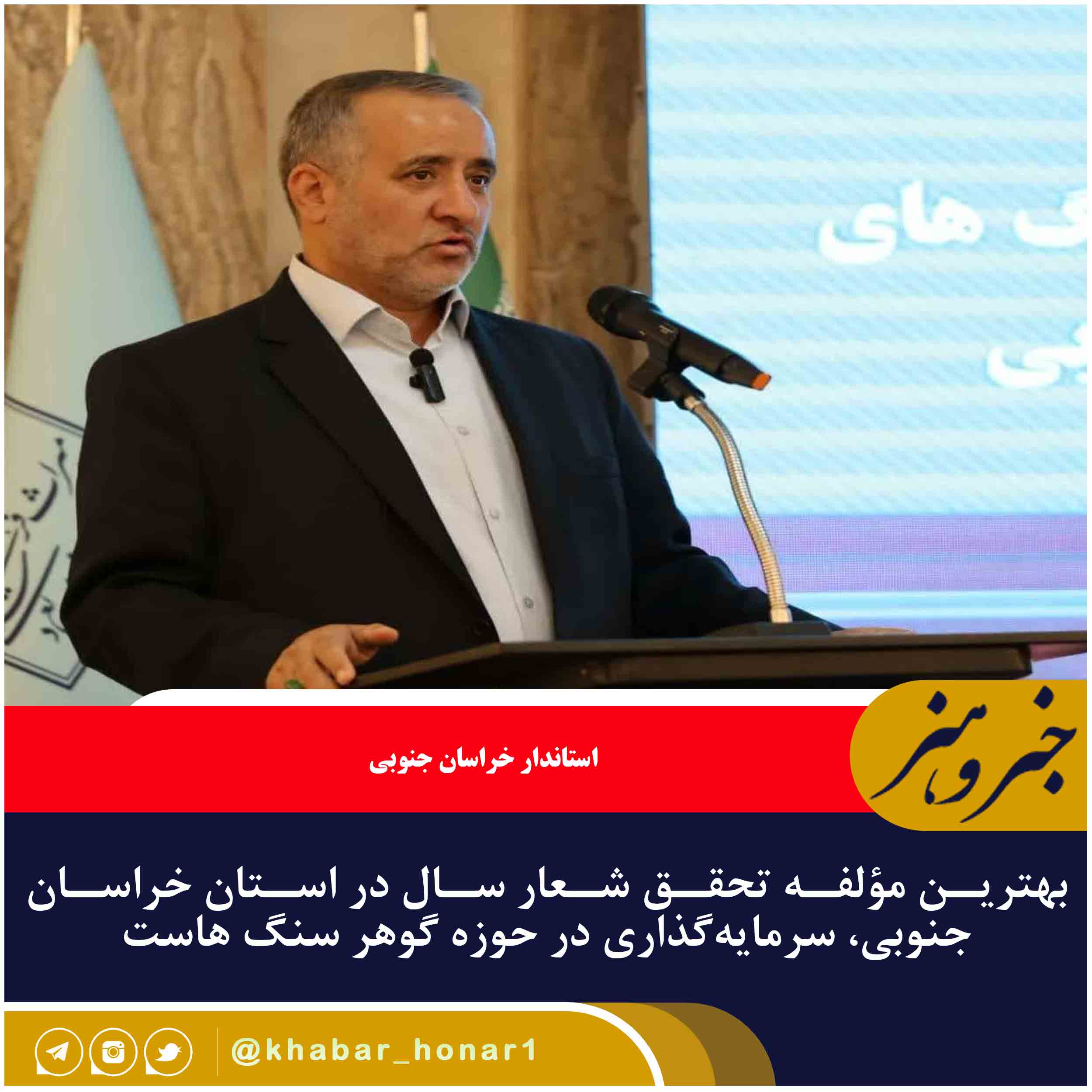 🔹استاندار خراسان جنوبی گفت: بهترین مؤلفه تحقق شعار سال در استان خراسان جنوبی، سرمایه گذاری در حوزه گوهر سنگ هاست.