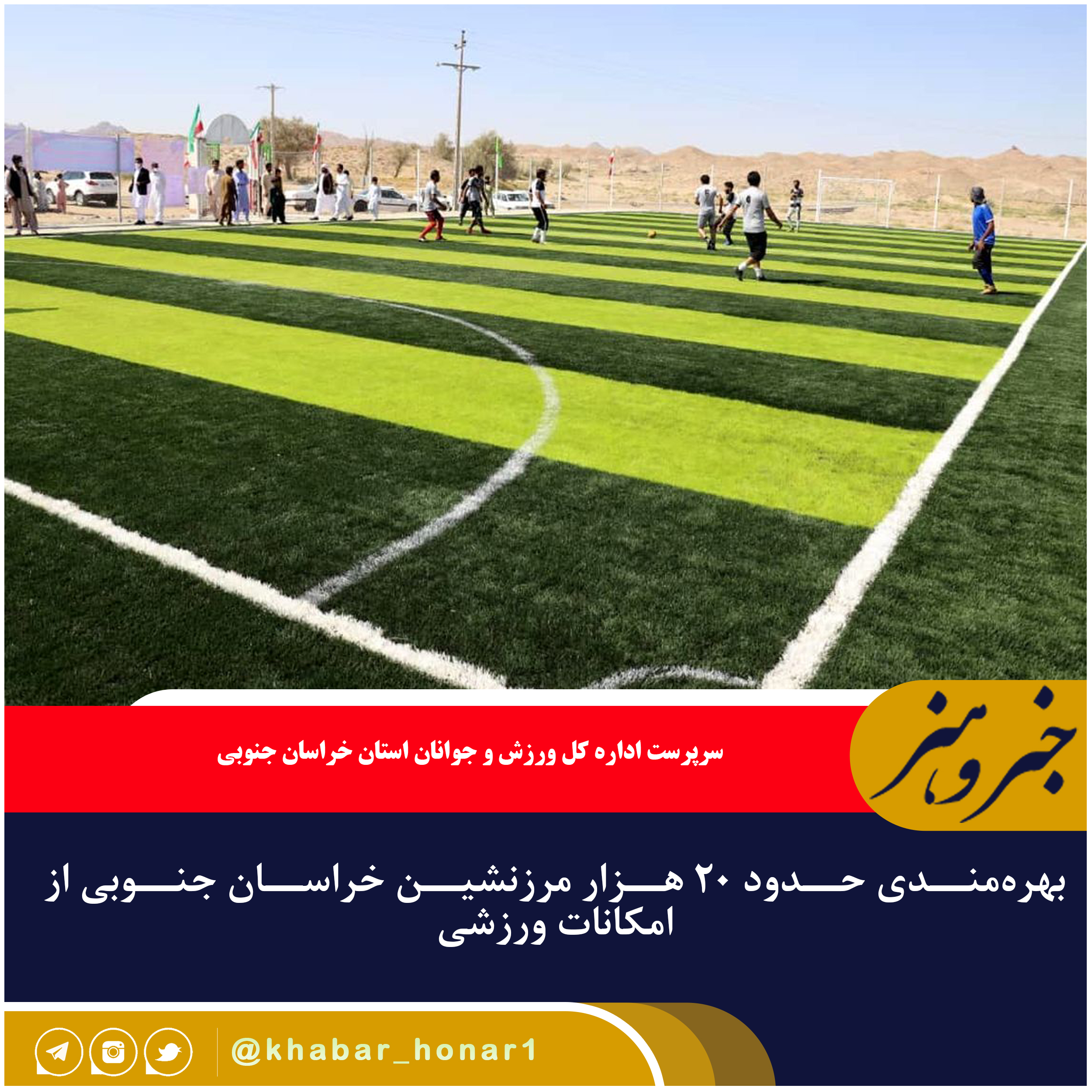 سرپرست اداره کل ورزش و جوانان استان خراسان جنوبی گفت: حدود ۲۰ هزار مرز نشین از طرحها و امکانات ورزشی خراسان جنوبی بهره مند میشوند.