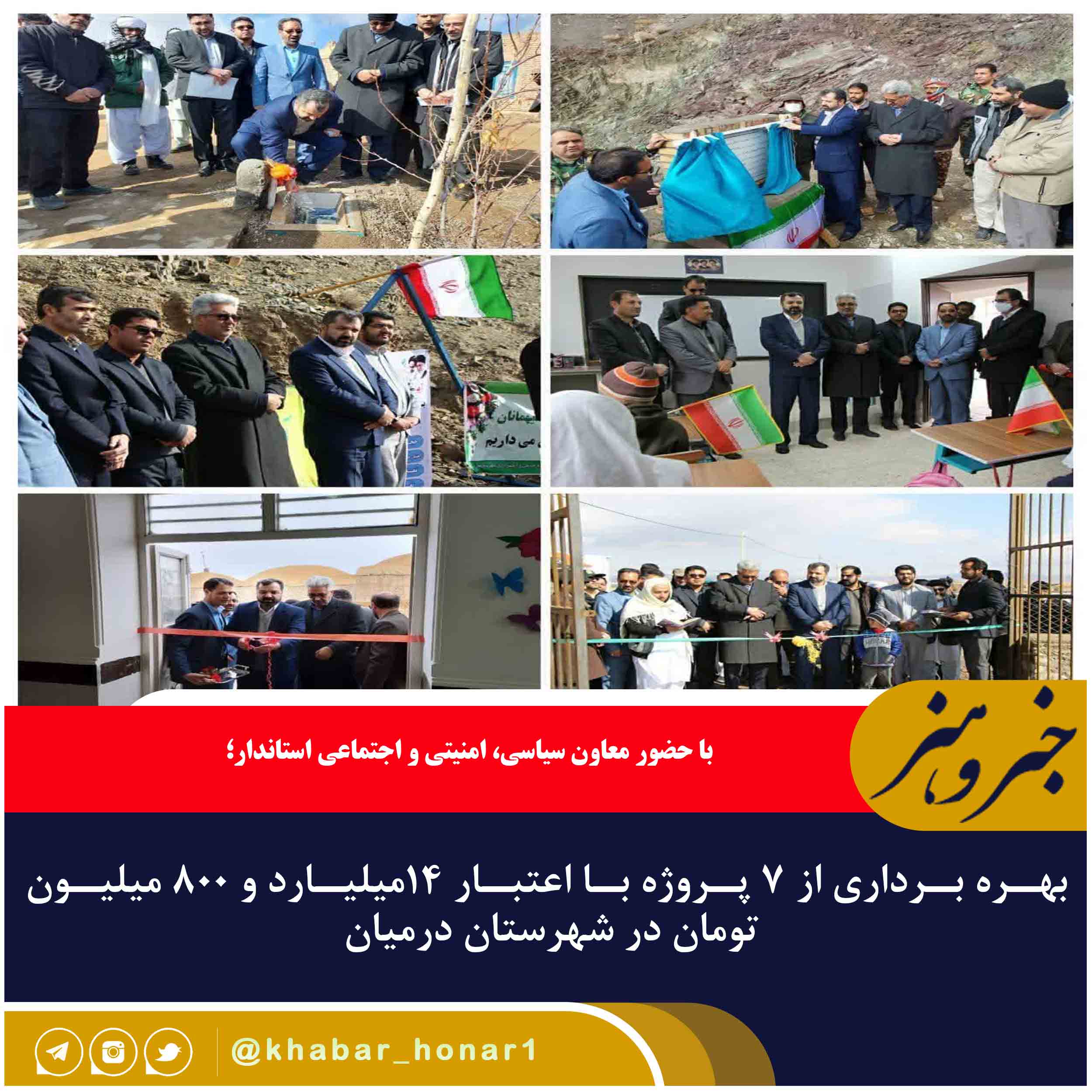 ?بهره برداری از ۷ پروژه با اعتبار ۱۴میلیارد و ۸۰۰ میلیون تومان در شهرستان درمیان