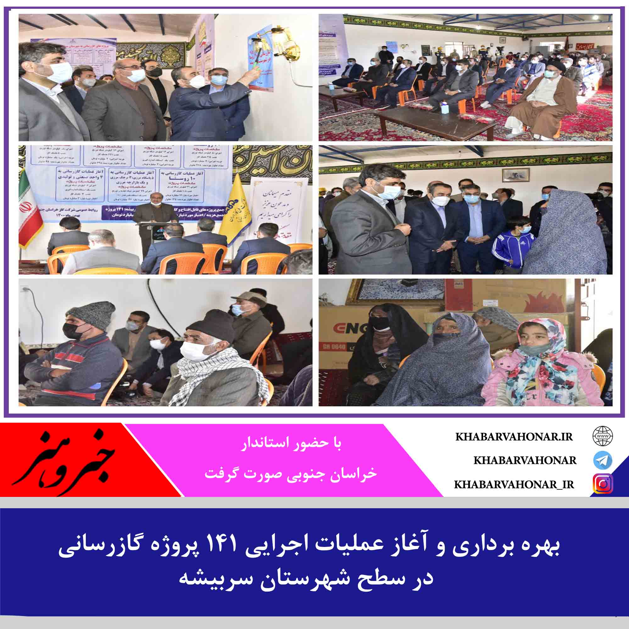 ؛با حضور استاندار خراسان جنوبی، مراسم بهره برداری و آغاز عملیات اجرایی ۱۴۱ پروژه گازرسانی در سطح شهرستان سربیشه برگزار شد.