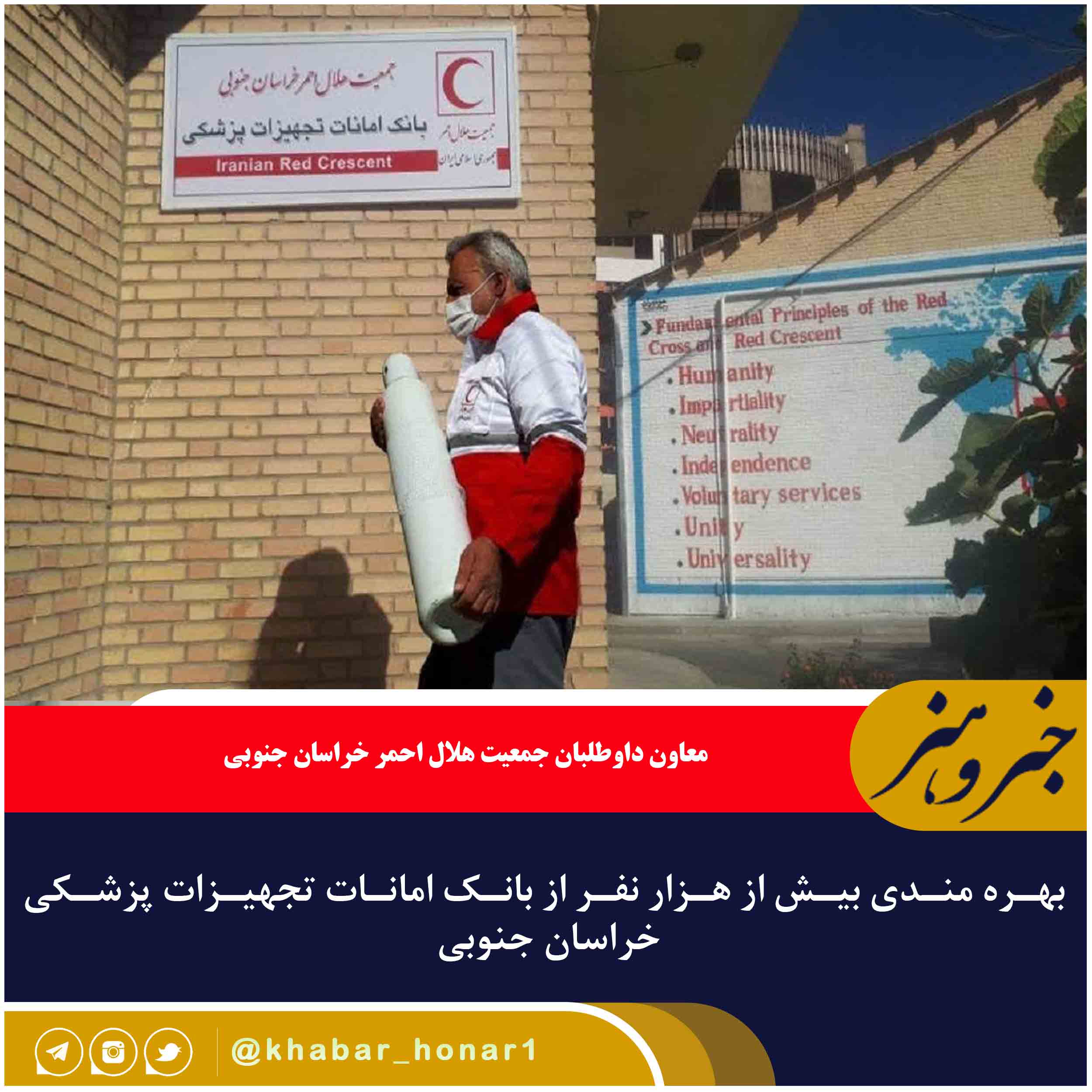 معاون داوطلبان جمعیت هلال احمر خراسان جنوبی گفت: پارسال هزار و ۴۷۰ نفر از امکانات بانک امانات تجهیزات پزشکی جمعیت هلال احمر استان بهره‌مند شده اند.