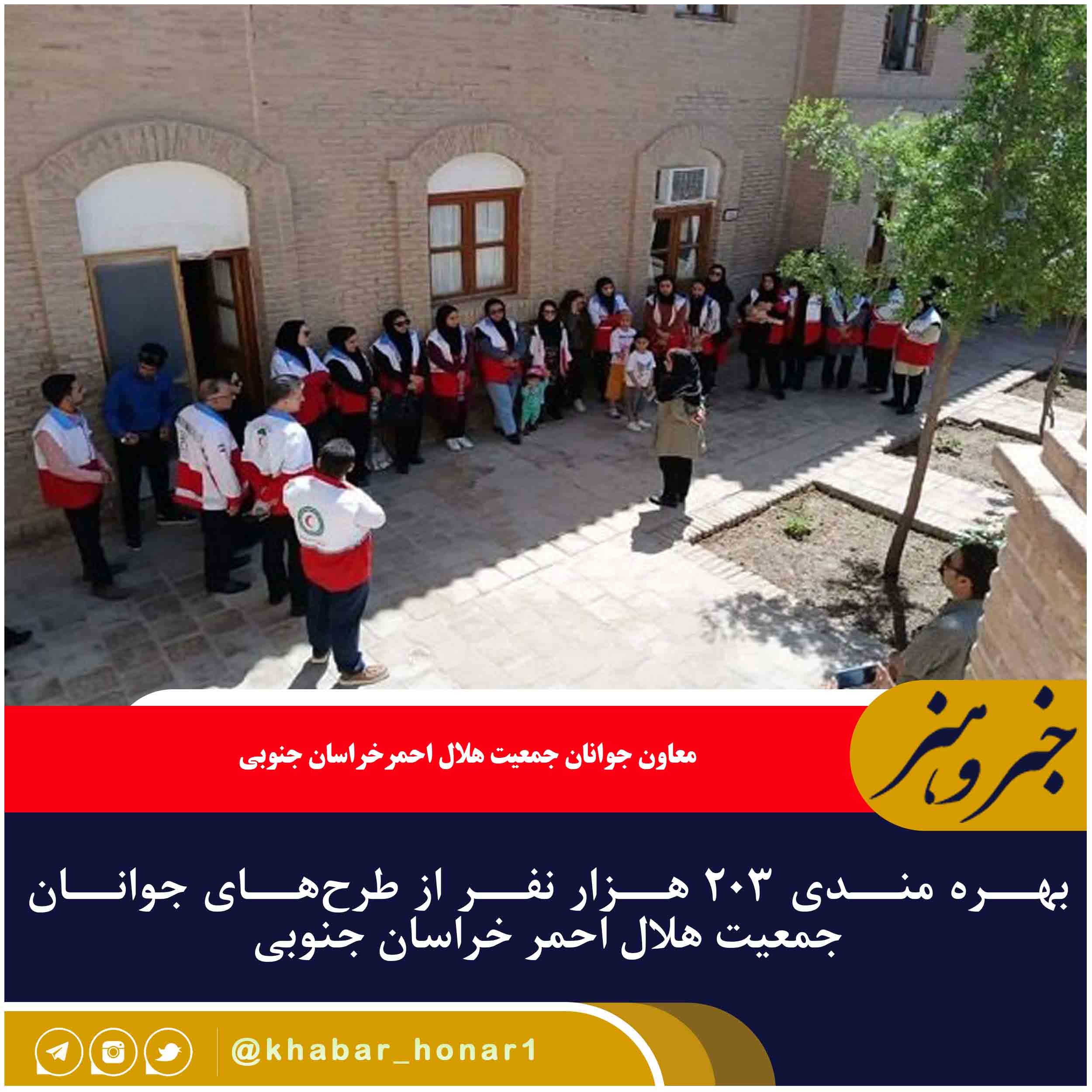 معاون جوانان جمعیت هلال احمرخراسان جنوبی از بهره مندی ۲۰۳ هزار و ۸۲۵ نفر از طرحهای جوانان در سه ماهه نخست امسال خبر داد.