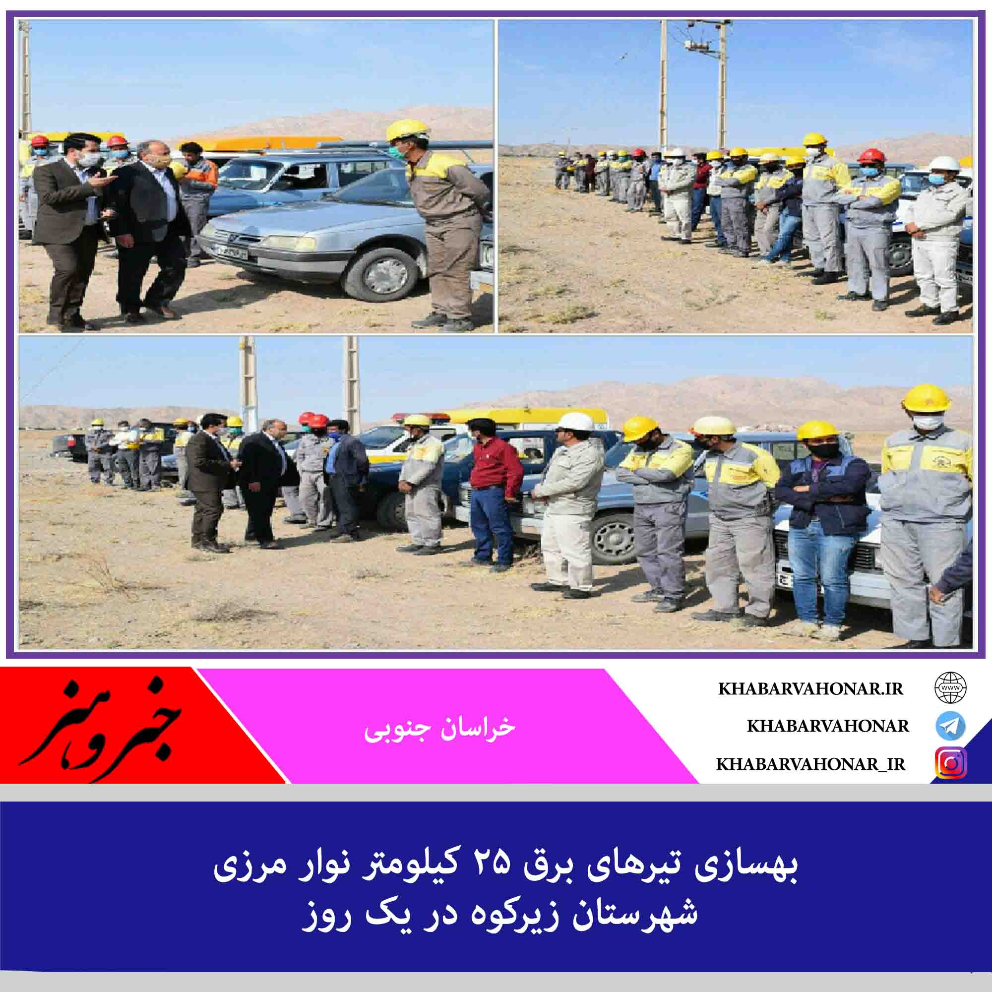 بهسازی تیرهای برق ۲۵ کیلومتر نوار مرزی شهرستان زیرکوه در یک روز