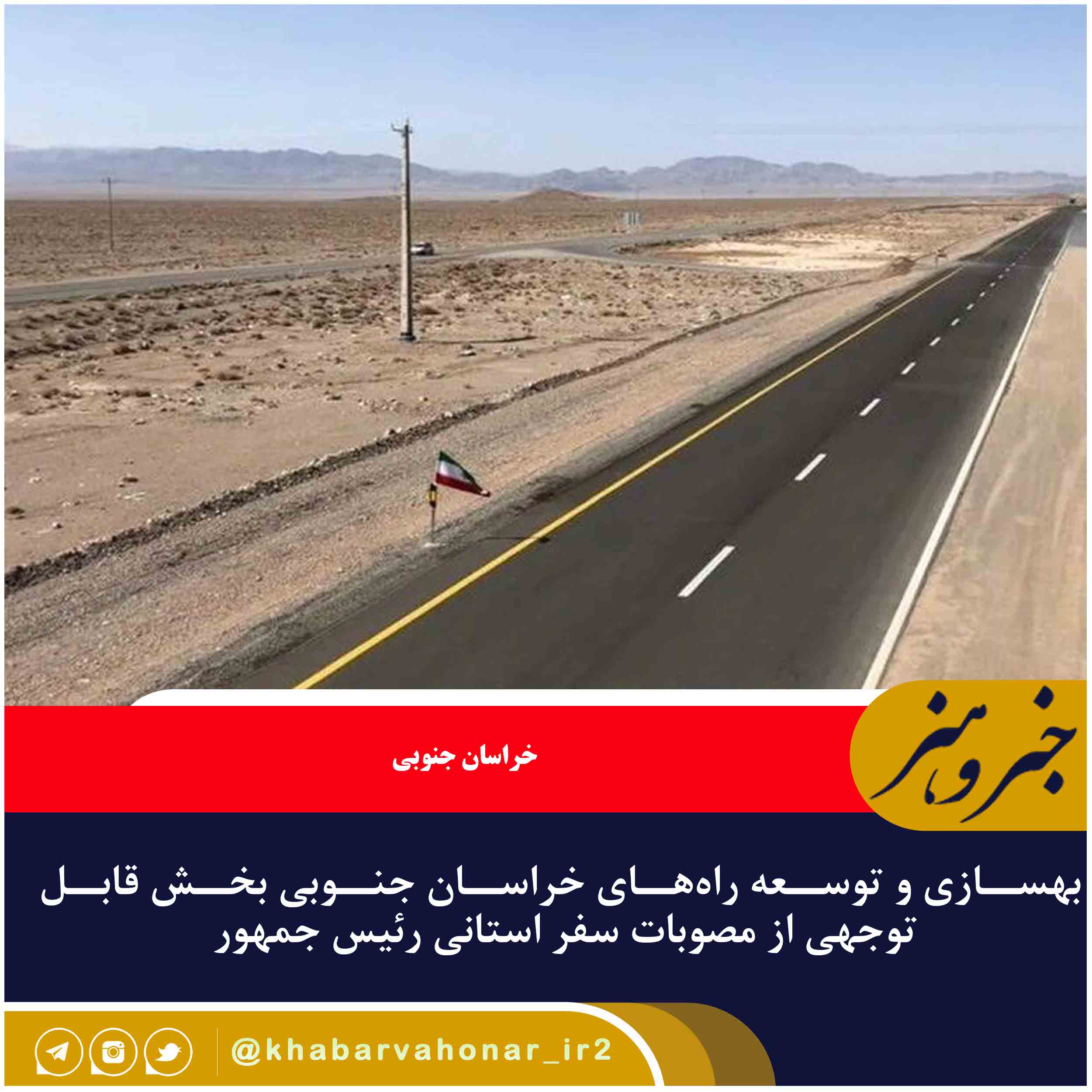 بهسازی و توسعه راههای خراسان جنوبی بخش قابل توجهی از مصوبات سفر استانی رئیس جمهور را به خود اختصاص داده و علاوه بر افتتاح ۵۰ کیلومتر راه دوبانده در سال گذشته قرار است ۱۰۰ کیلومتر باند دوم تا پایان سال جاری در این استان تکمیل شود.