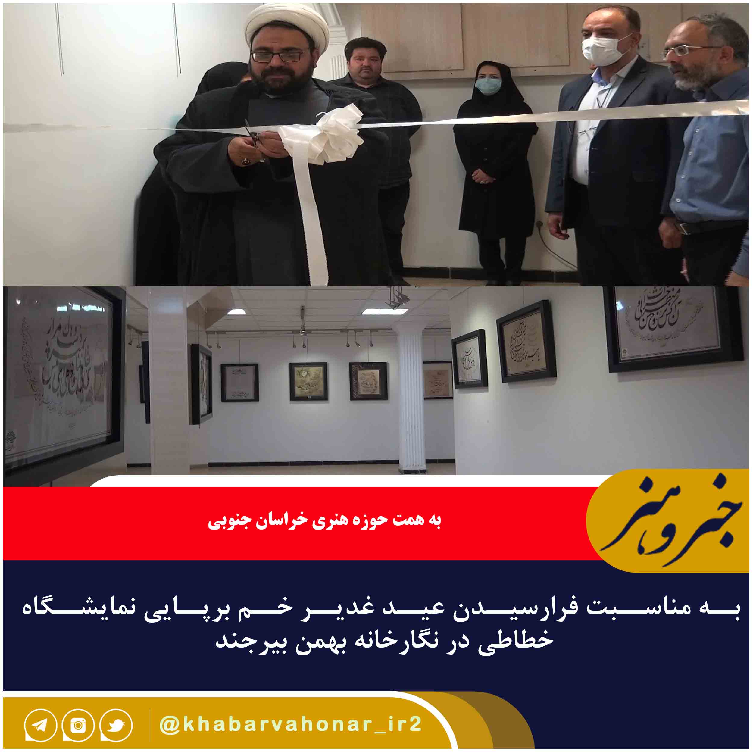 حوزه هنری خراسان جنوبی اقدام به برپایی نمایشگاه خطاطی در نگارخانه بهمن شهر بیرجند کرد.