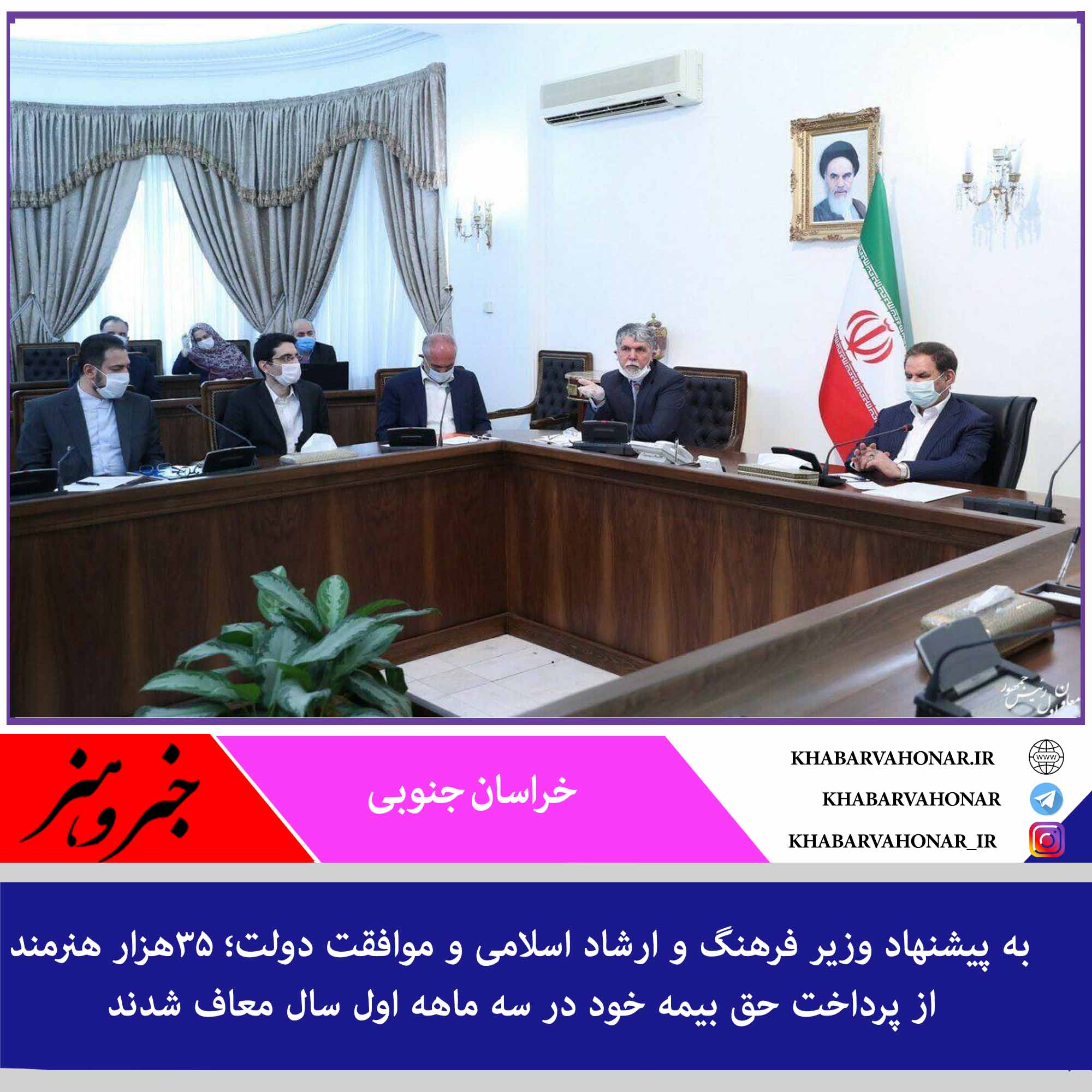 در جلسه ای به ریاست دکتر جهانگیری معاون اول ریاست جمهوری و با حضور سیدعباس صالحی وزیر فرهنگ و ارشاد اسلامی که در نهاد ریاست جمهوری برگزار شد، ۳۵ هزار هنرمند از پرداخت حق بیمه خود در ایام کرونا در سه ماهه اول سال معاف شدند.