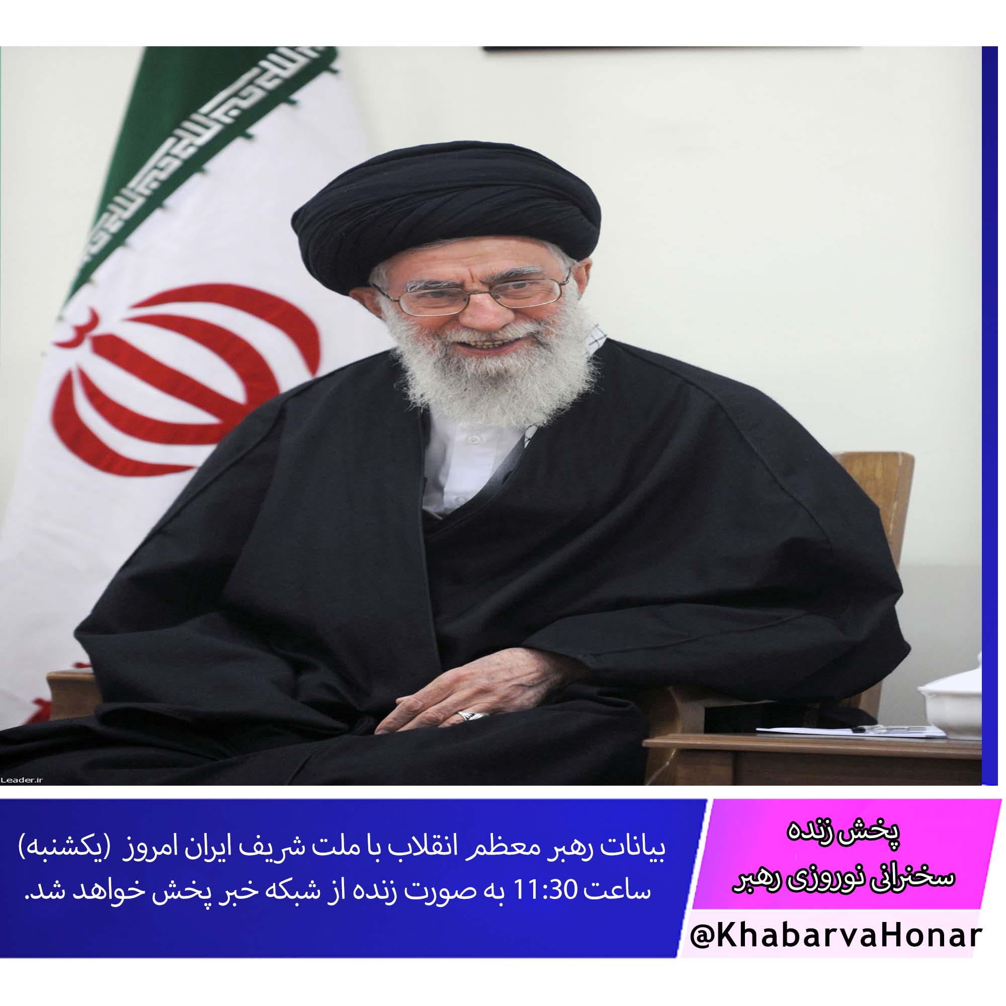 بیانات رهبر معظم انقلاب با ملت شریف ایران امروز (یکشنبه) ساعت ۱۱:۳۰ به صورت زنده از شبکه خبر پخش خواهد شد.
