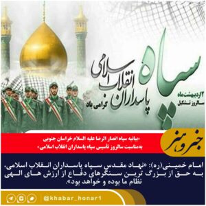 امام خمینی(ره): «نهاد مقدس سپاه پاسداران انقلاب اسلامی، به حق از بزرگ ترین سنگرهای دفاع از ارزش های الهی نظام ما بوده و خواهد بود».