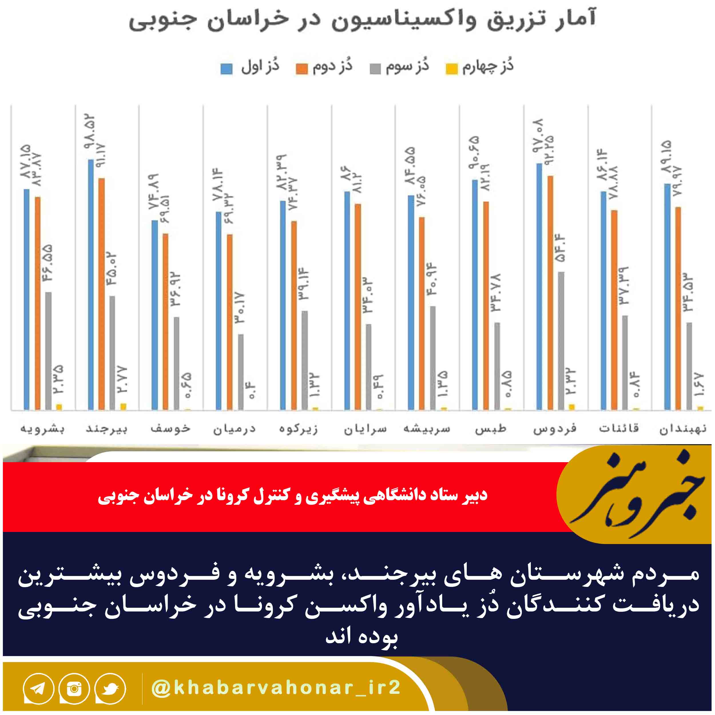 ?مردم شهرستان های بیرجند، بشرویه و فردوس بیشترین دریافت کنندگان دُز یادآور واکسن کرونا در خراسان جنوبی بوده اند.