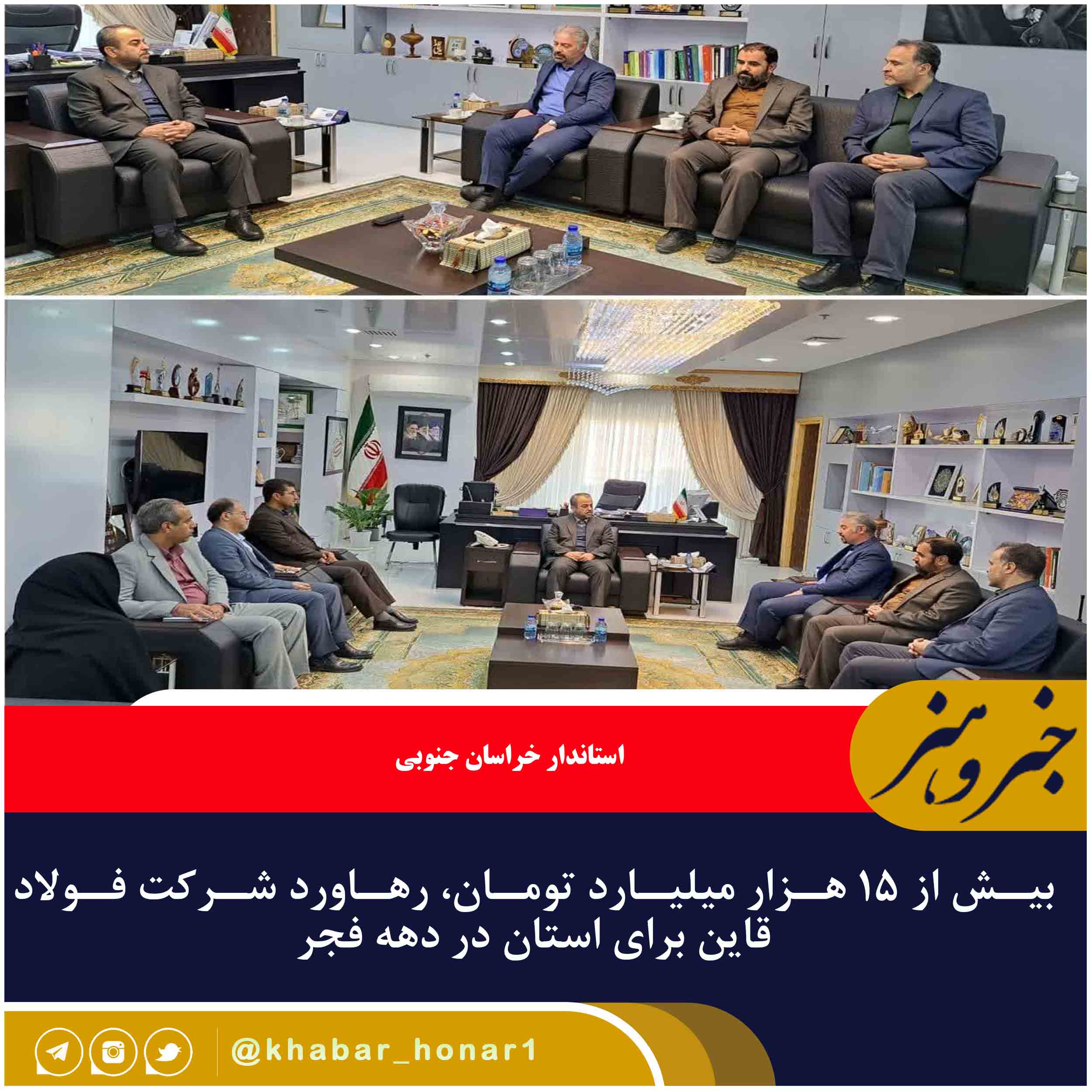 ?استاندار خراسان جنوبی از سرمایه گذاری بیش از ۱۵ هزار میلیارد تومانی شرکت فولاد قاین برای استان در دهه فجر خبر داد.