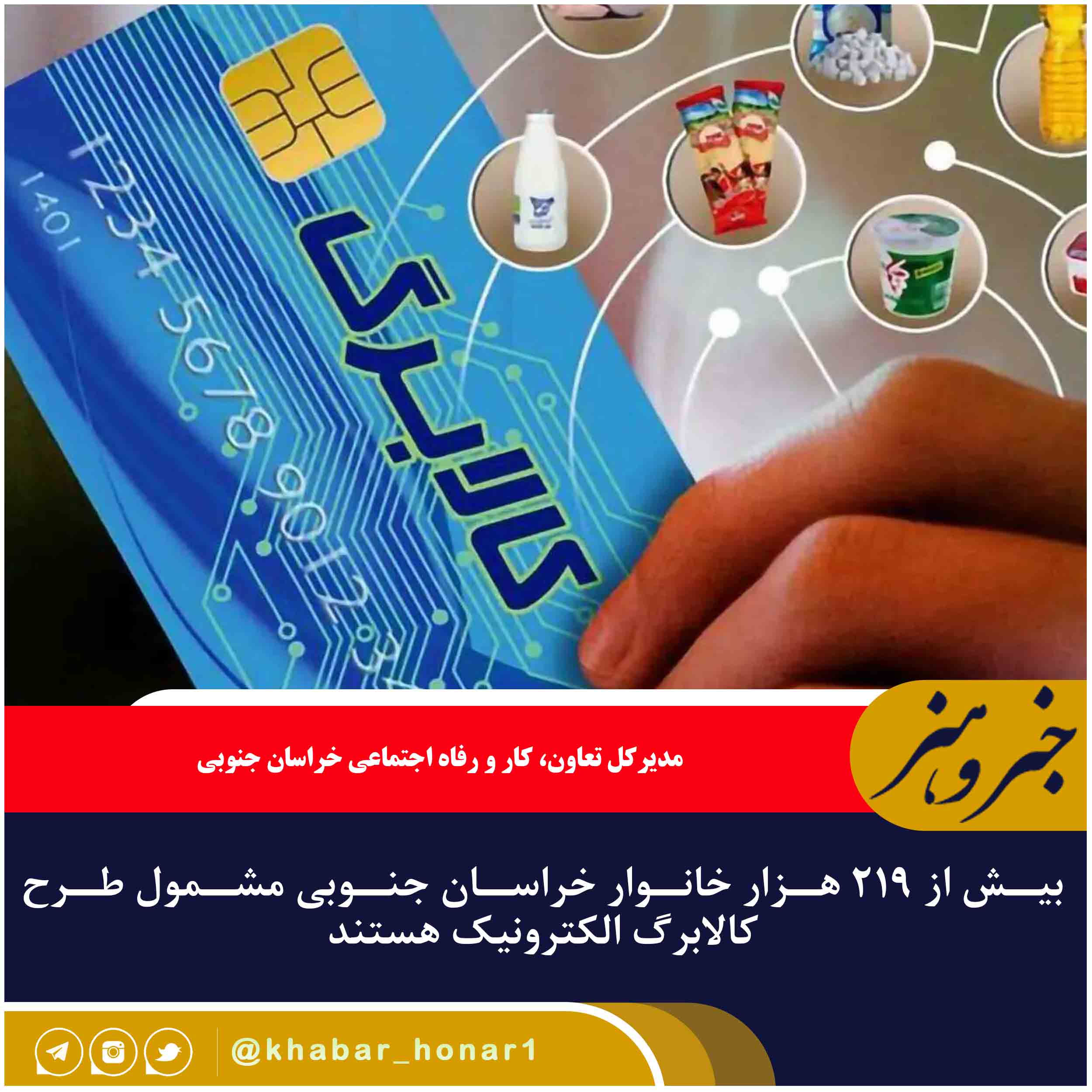 مدیرکل تعاون، کار و رفاه اجتماعی خراسان جنوبی گفت: اکنون ۲۱۹ هزار و ۷۳۸ خانوار در استان از دهک یک تا هفت، مشمول طرح کالابرگ الکترونیکی هستند.