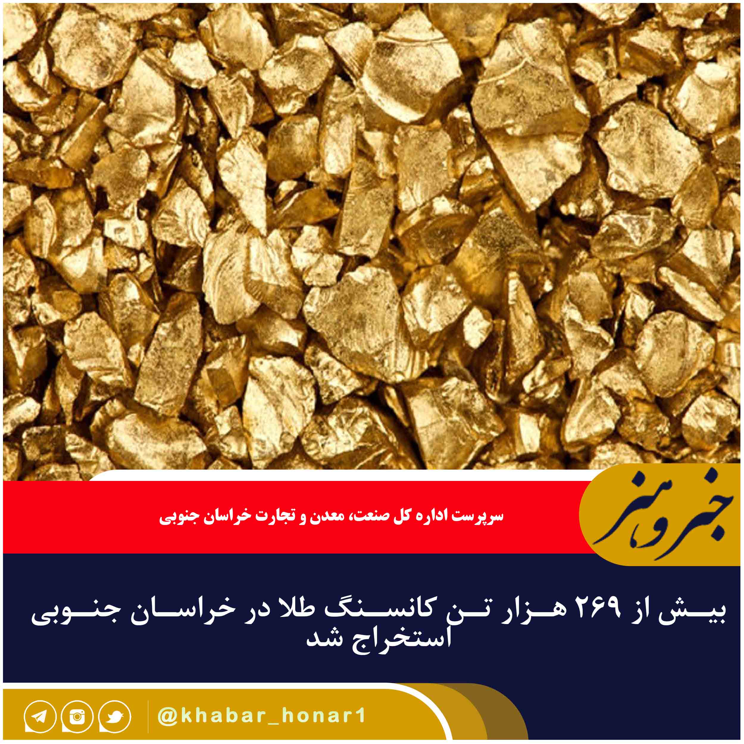 سرپرست اداره کل صنعت، معدن و تجارت خراسان جنوبی از استخراج بیش از ۲۶۹ هزار تن کانسنگ طلا در استان در ۴ ماهه ابتدایی امسال خبر داد.