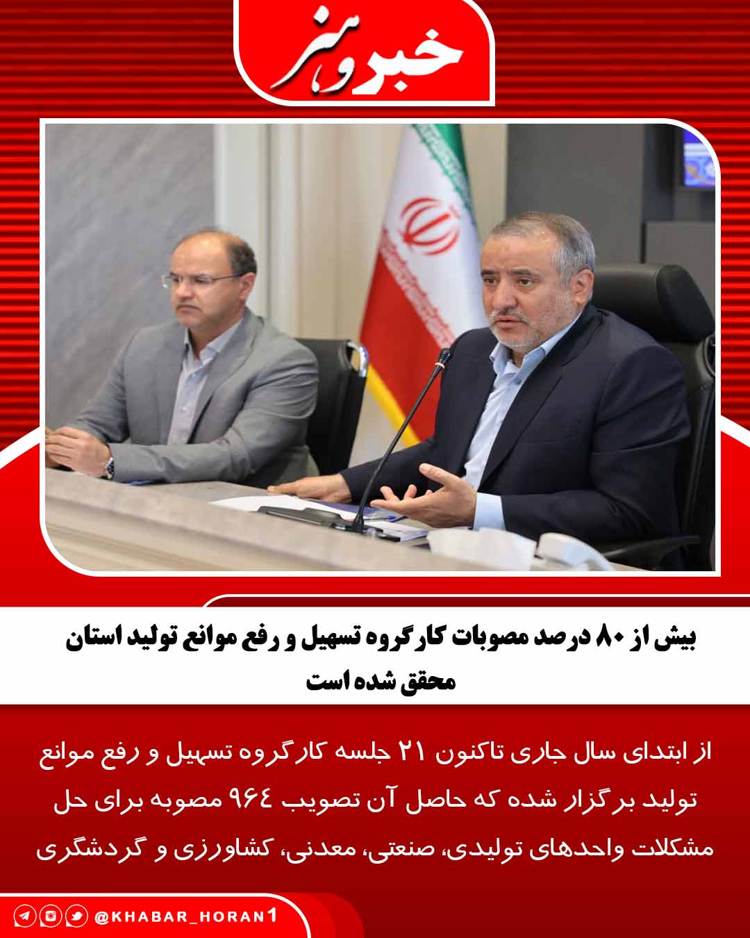 ، سید محمدرضا هاشمی روز پنجشنبه در جلسه کارگروه تسهیل و رفع موانع تولید استان با بیان اینکه برگزاری منظم جلسات این کارگروه نقش مؤثری در پویایی واحدهای تولیدی و افزایش رضایتمندی فعالان اقتصادی داشته، اظهار داشت: از ابتدای سال جاری تاکنون ۲۱ جلسه کارگروه تسهیل و رفع موانع تولید برگزار شده که حاصل آن تصویب ۹۶۴ مصوبه برای حل مشکلات واحدهای تولیدی، صنعتی، معدنی، کشاورزی و گردشگری استان بوده است.