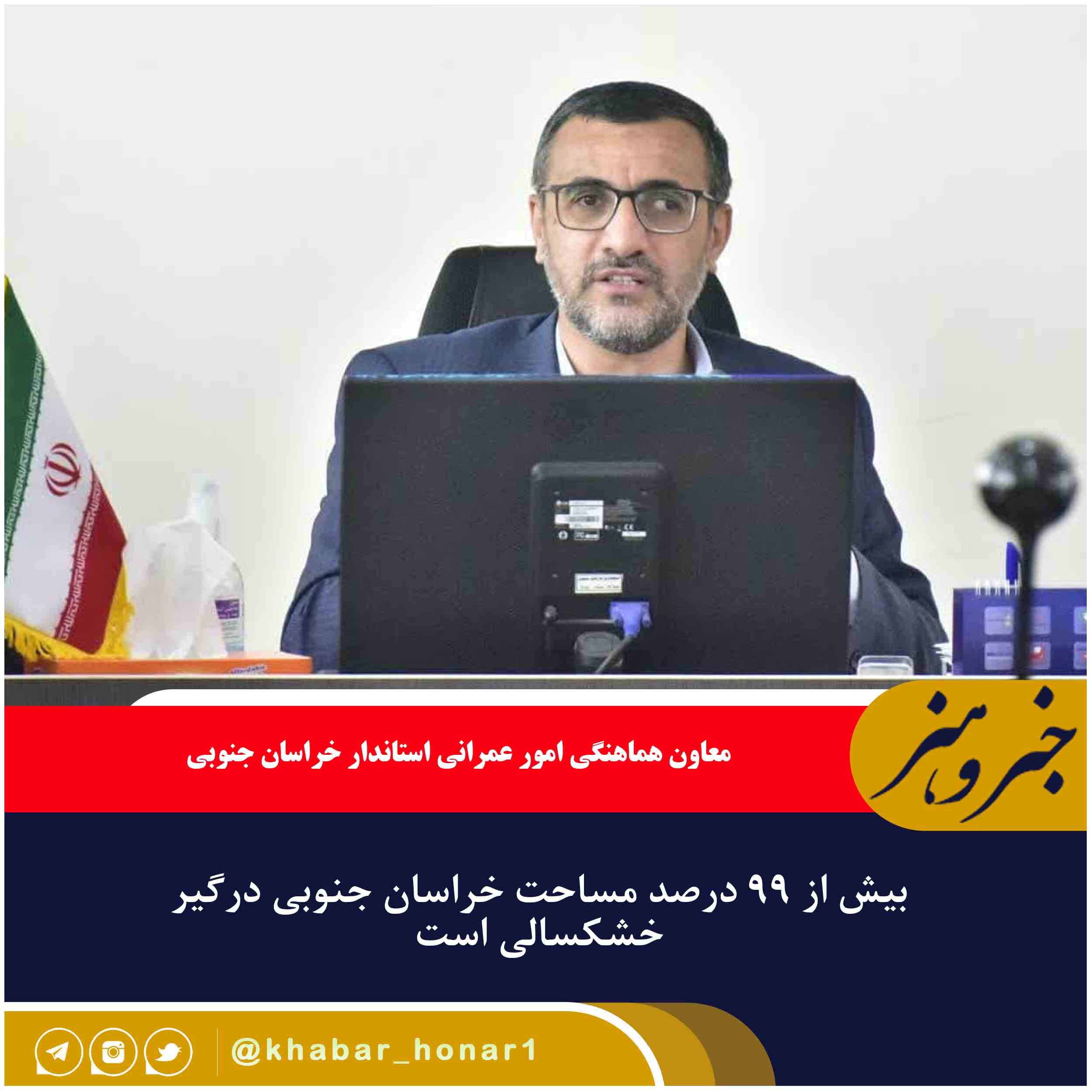 معاون هماهنگی امور عمرانی استاندار خراسان جنوبی گفت: بیش از ۹۹ درصد مساحت خراسان جنوبی درگیر خشکسالی است و با تداوم خشکسالی و کمآبی در استان باید در جهت مدیریت مصرف آب، اثرات خشکسالی و کمآبی به طور مستمر برای مردم تبیین شود.