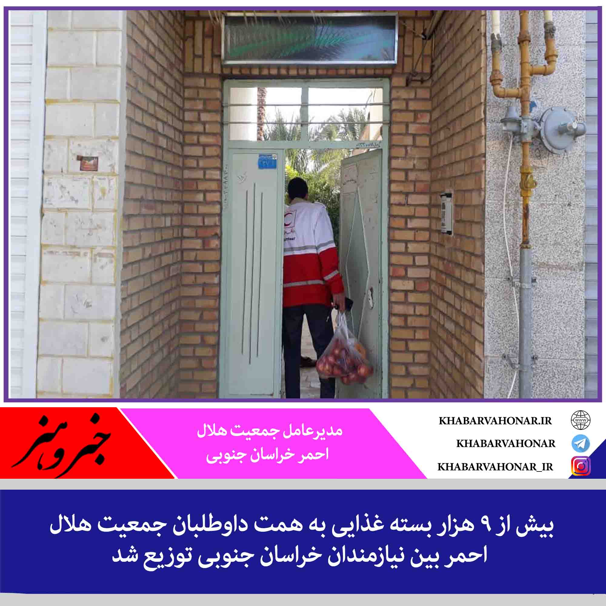 مدیرعامل جمعیت هلال احمر خراسان جنوبی گفت: تاکنون ۹ هزار و ۷۲۷ بسته غذایی به همت داوطلبان جمعیت هلال احمر بین نیازمندان استان و خانوارهای آسیبدیده از کرونا توزیع شده است.