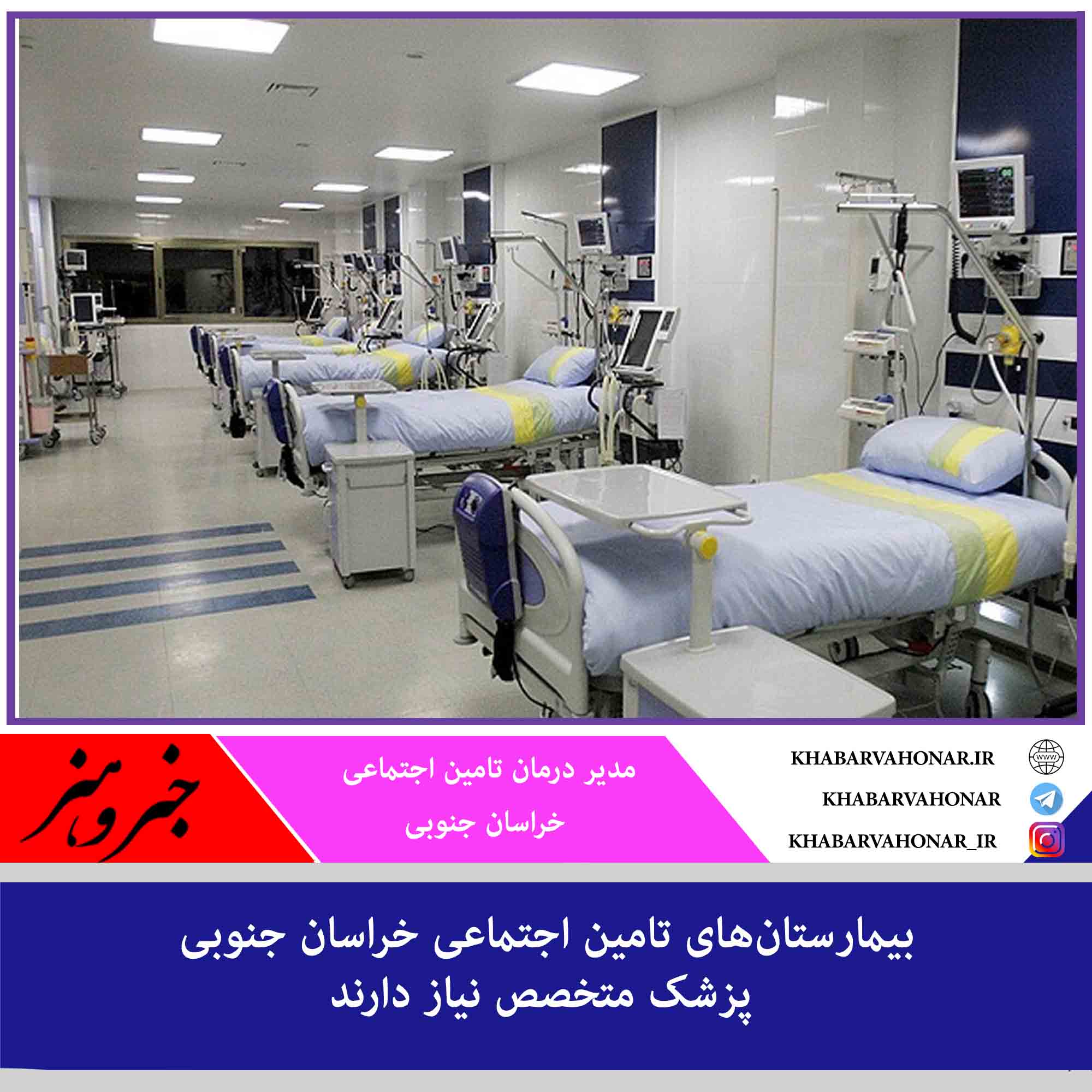 مدیر درمان تامین اجتماعی خراسان جنوبی گفت: در بیمارستانهای تامین اجتماعی استان از نظر پزشک متخصص کمبود قابل توجه داریم و برای رفع آن نیازمند همکاری وزارت بهداشت و دانشگاه علوم پزشکی هستیم.
