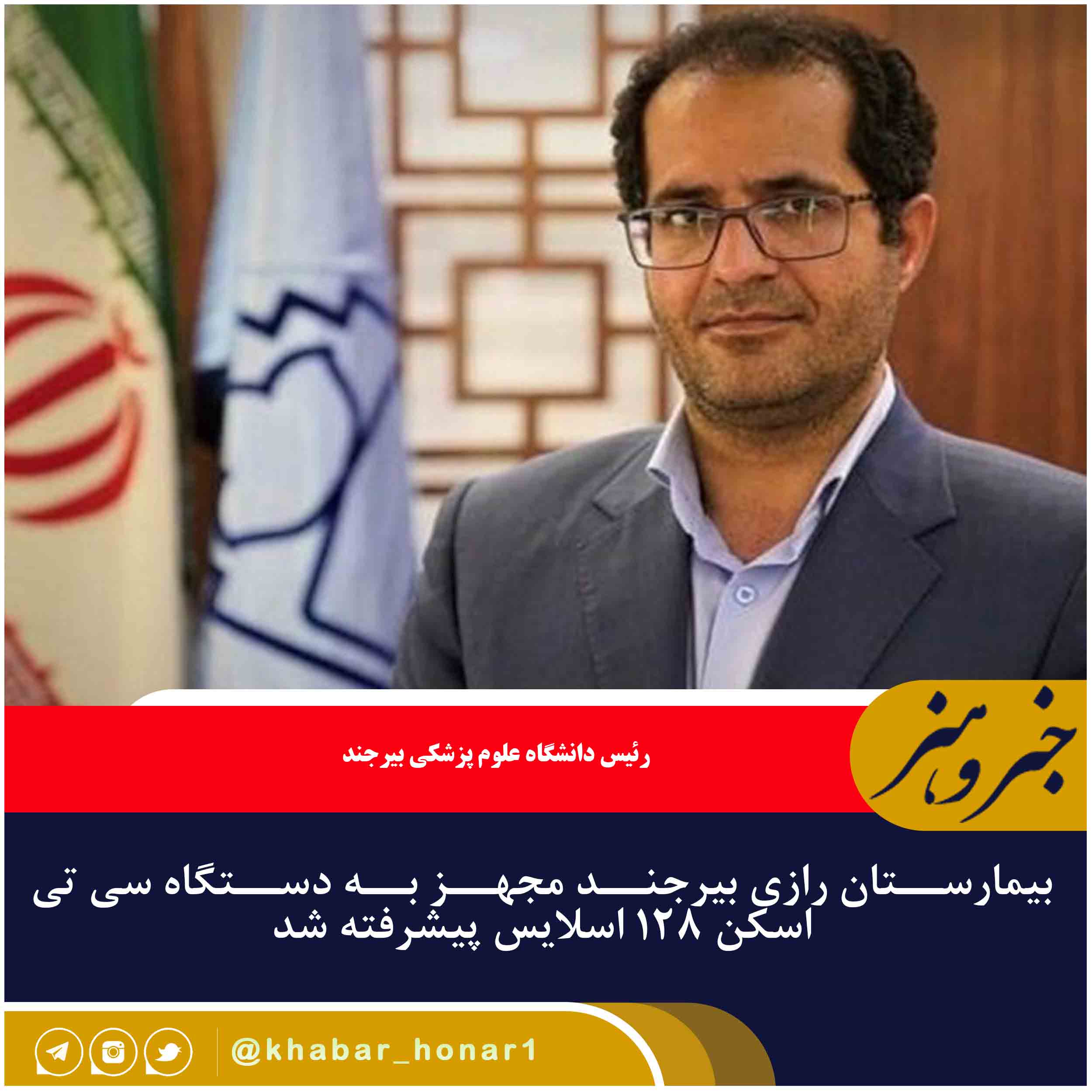 -رئیس دانشگاه علوم پزشکی بیرجند گفت: با پیگیری های دانشگاه علوم پزشکی بیرجند بیمارستان رازی مرکز استان مجهز به دستگاه سی تی اسکن پیشرفته شد.