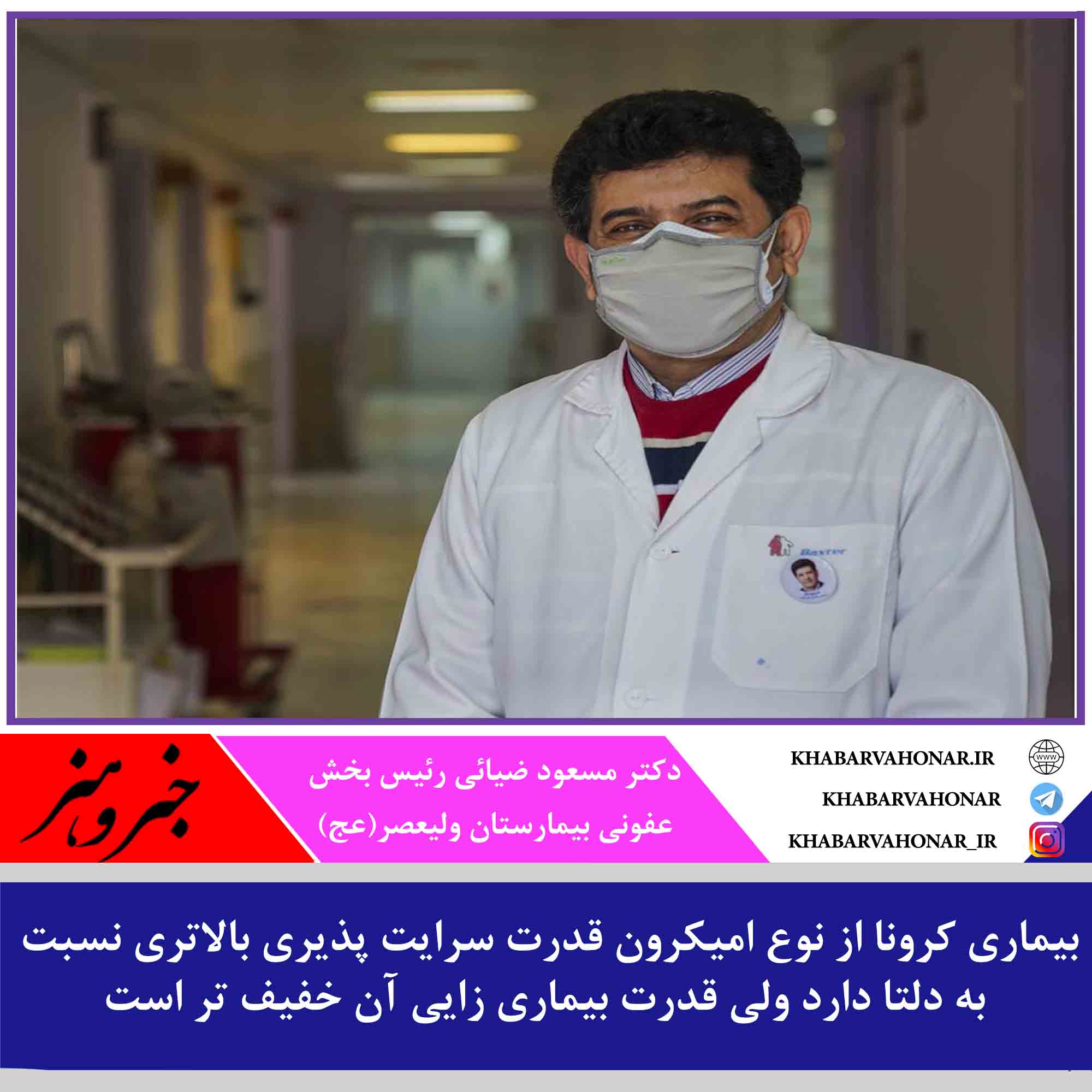 دکتر ضیائی در خصوص قدرت سرایت پذیری امیکرون گفت: با توجه به قدرت بالای سرایت پذیری امیکرون، اگر نکات لازم برای کنترل آن رعایت نشود، حتی همان موارد کم بستری نیز زیاد شده و برای بیماران و کادر درمان مشکل جدی ایجاد می کند در نتیجه لازم است تمام تلاشمان را برای پیشگیری از ابتلا به این بیماری انجام دهیم و نوبت سوم واکسنمان را تزریق و اگر واکسن هم نزدیم واکسیناسیونمان را کامل کنیم.