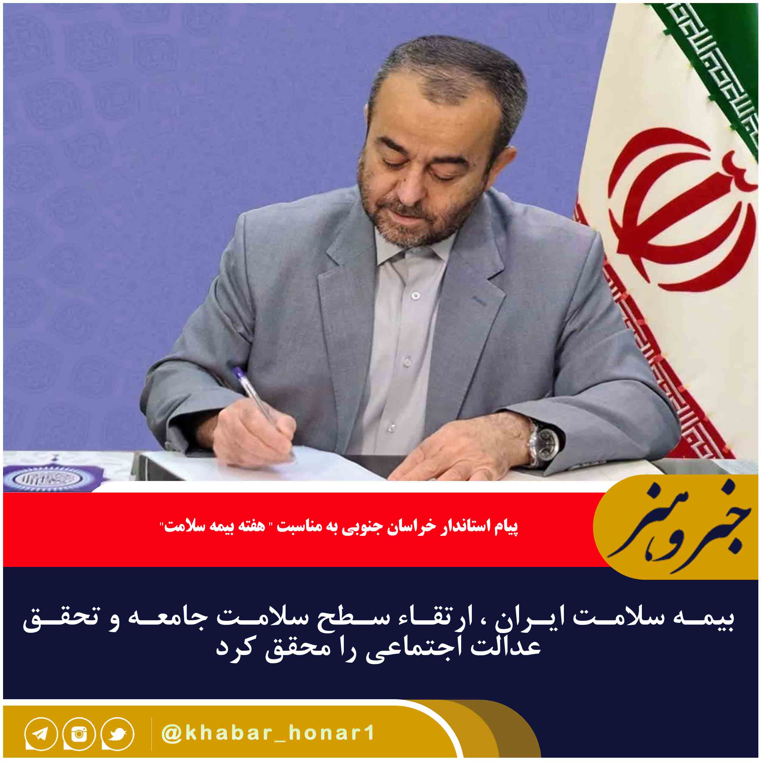 ?اینجانب ضمن تبریک هفته بیمه سلامت، تلاش های کلیه حوزه های متولی تضمین سلامت جامعه را ستوده و با پاسداشت اهتمام مدیران و کارکنان بیمه سلامت خراسان جنوبی که با تحت پوشش قرار دادن تمامی افراد فاقد پوشش بیمه در استان و اجرای طرحهایی که سطح دسترسی مردم به خدمات را تسهیل نموده، اقدامات تأثیرگذاری در حوزه سلامت داشته و دارند، از درگاه ایزد منان برای همگان سلامتی و توفیق روزافزون مسئلت دارم.
