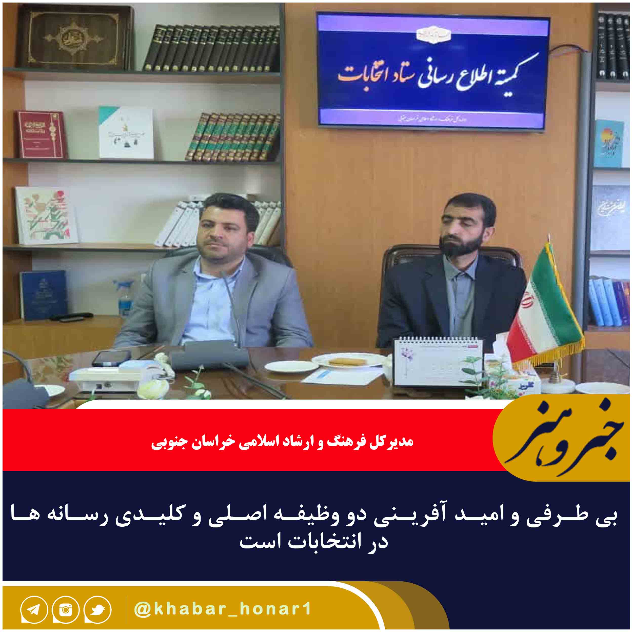 مدیرکل فرهنگ و ارشاد اسلامی خراسان جنوبی در این نشست، تمرکز بر امیدافرینی را مورد تأکید قرار داد و گفت: خبرنگاران در حوزه تقویت و ایمان مردم به آینده روشن انقلاب و کشور؛ هنرمندانه ورود کنند.علی فرخنده امروز ۲۹ خرداد سال ۱۴۰۲ در کمیته اطلاع رسانی ستاد انتخابات خراسان جنوبی خواستار ارائه گزارش کار از سوی سرپرستی روزنامه ها در استان شد و افزود: جشنواره مطبوعات بعد از ۱۰ سال تعطیلی امسال برگزار میشود و تا ۳۱ تیرماه مهلت ارسال آثار دارد که امید است اهالی رسانه شرکت پرشور در این جشنواره داشته باشند.
