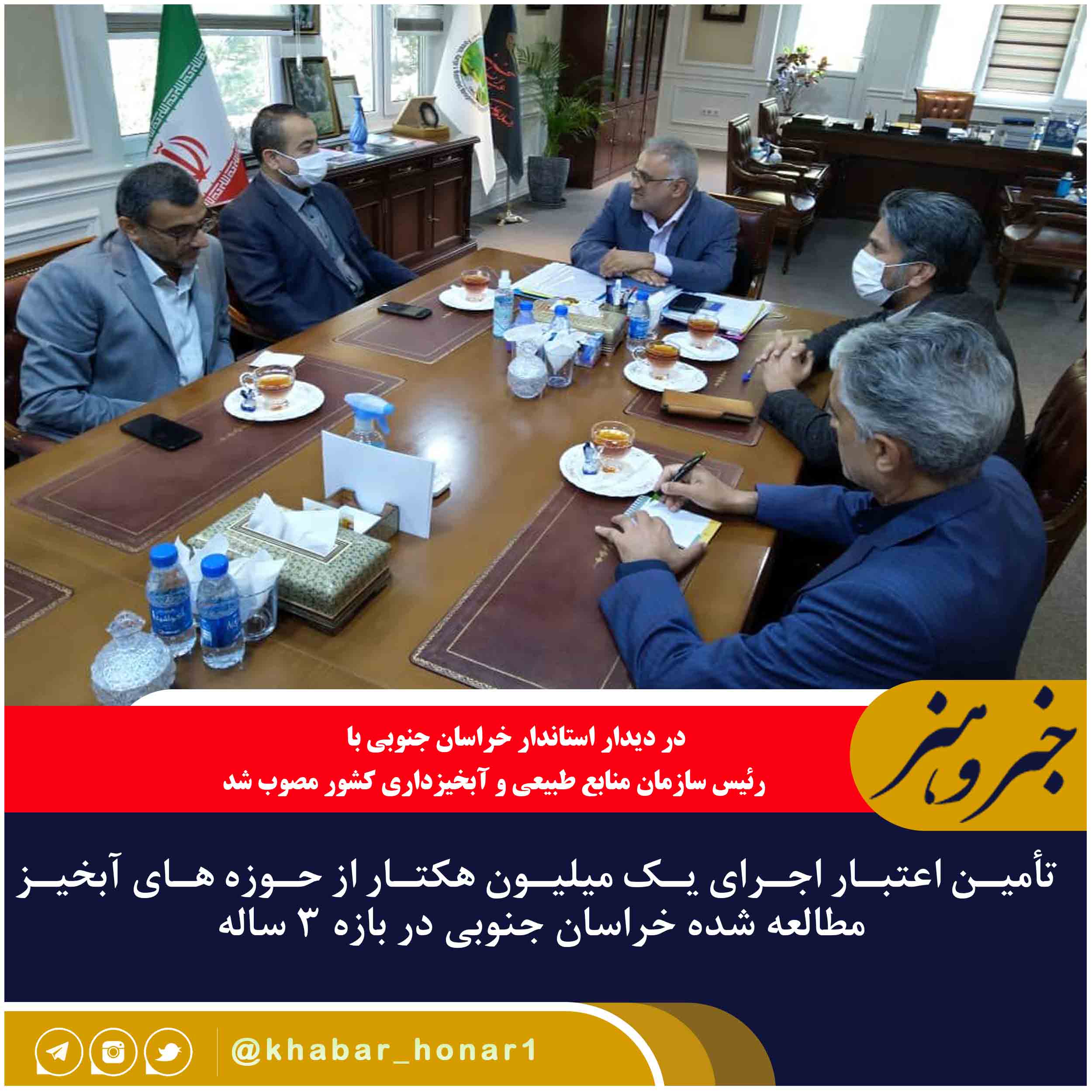 ?در دیدار استاندار خراسان جنوبی با معاون وزیر و رئیس سازمان منابع طبیعی و آبخیزداری کشور، تأمین اعتبار اجرای یک میلیون هکتار از حوزه های آبخیز مطالعه شده استان در بازه زمانی ۳ ساله مصوب شد.