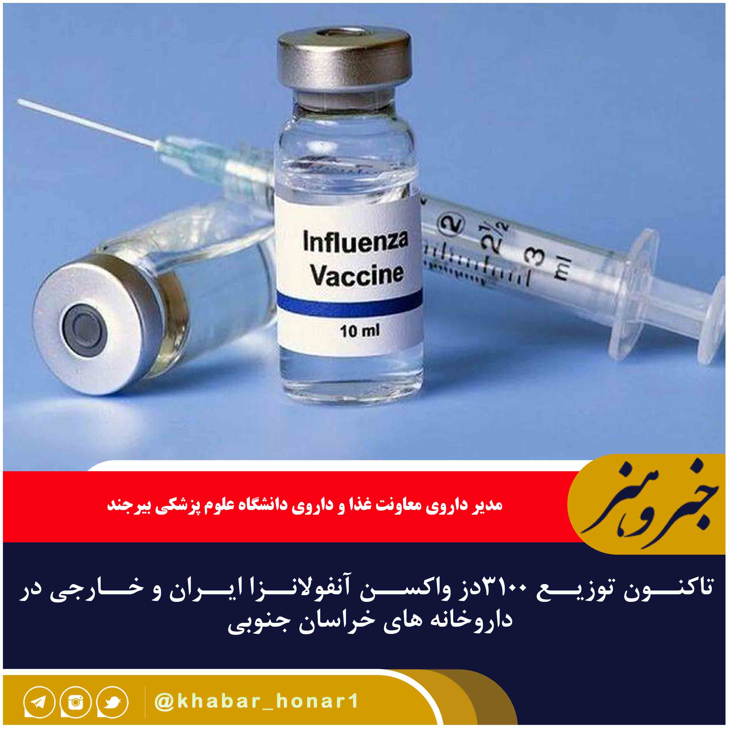 در آستانه پاییز ۳۱۰۰دز واکسن آنفولانزای ایرانی و خارجی در داروخانه های خراسان جنوبی توزیع شد.