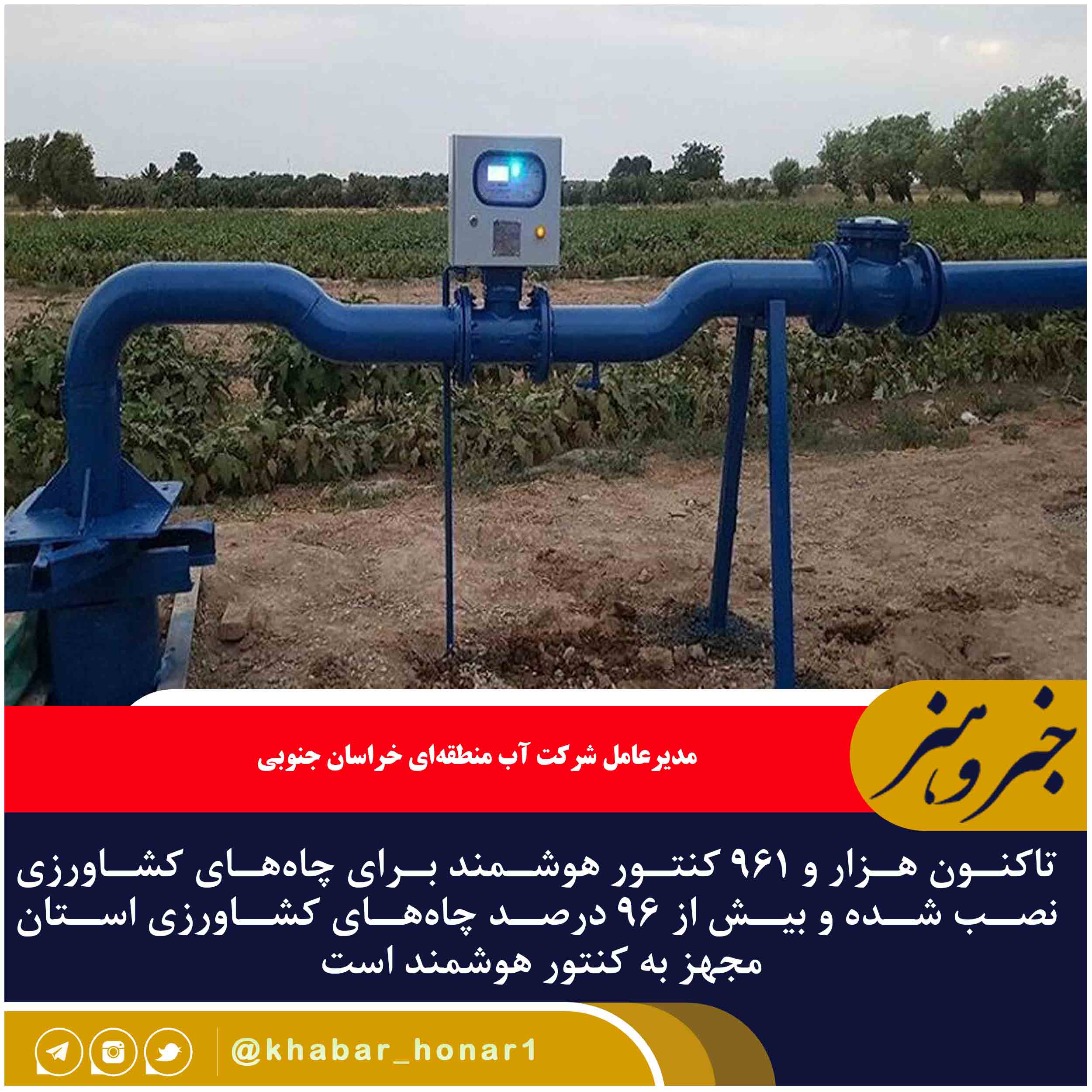 مدیرعامل شرکت آب منطقهای خراسان جنوبی گفت: تاکنون هزار و ۹۶۱ کنتور هوشمند برای چاههای کشاورزی نصب شده و بیش از ۹۶ درصد چاههای کشاورزی استان مجهز به کنتور هوشمند است.