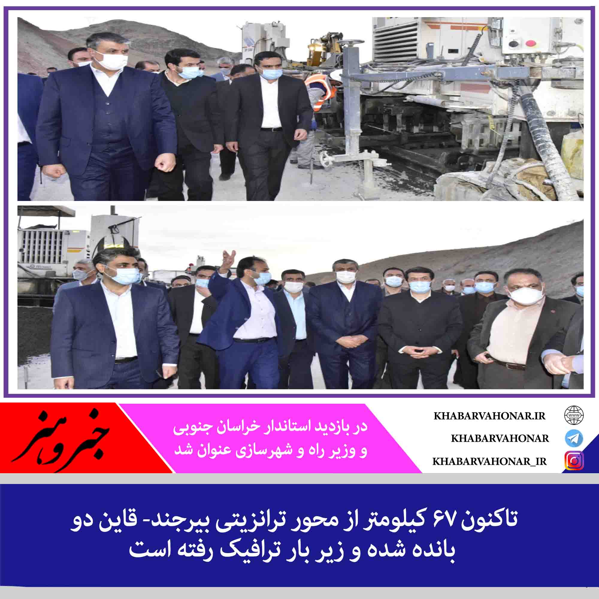 تاکنون ۶۷ کیلومتر از محور ترانزیتی بیرجند- قاین دو بانده شده و زیر بار ترافیک رفته است