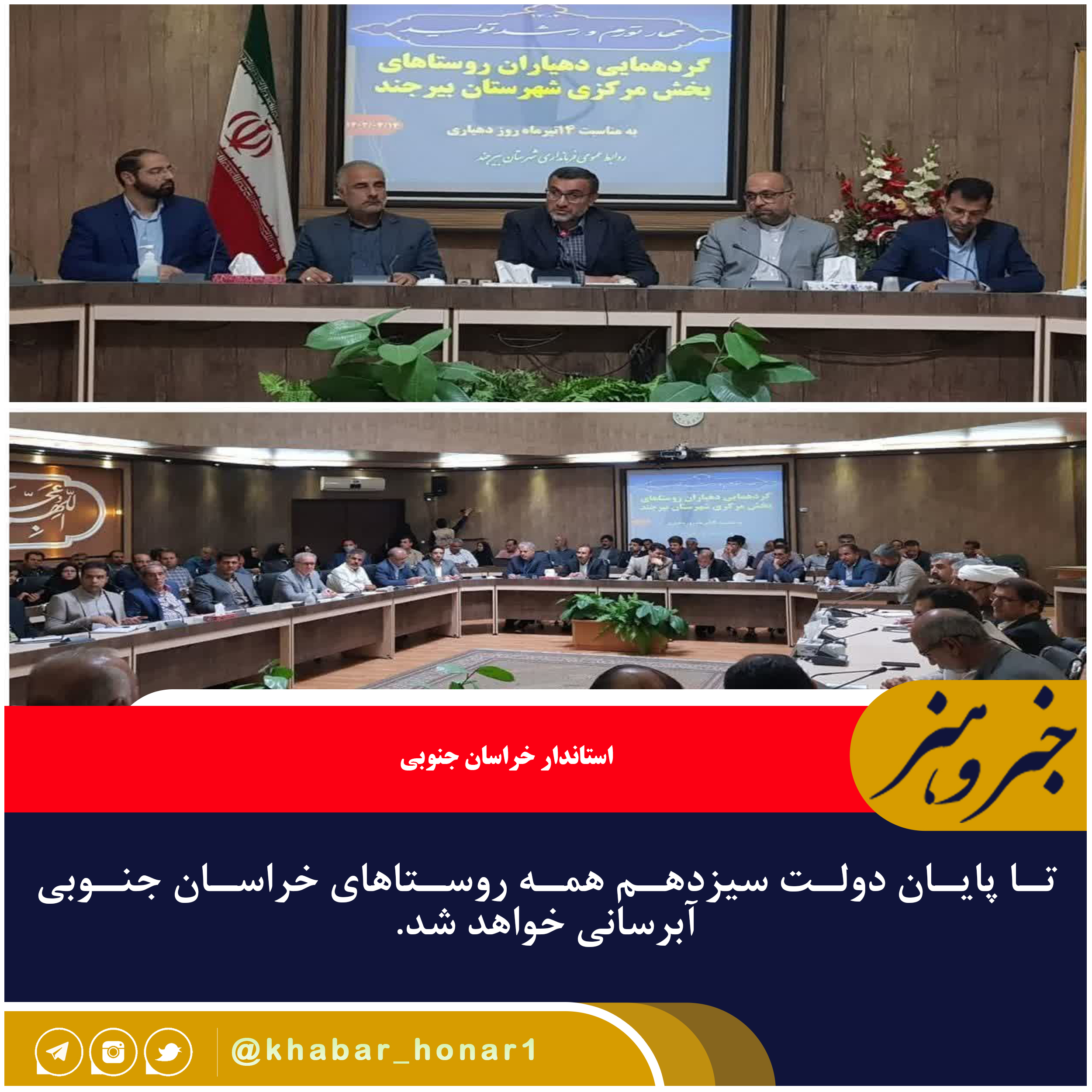 معاون هماهنگی امور عمرانی استاندار خراسان جنوبی گفت: تا پایان دولت سیزدهم همه روستاهای خراسان جنوبی آبرسانی خواهد شد.