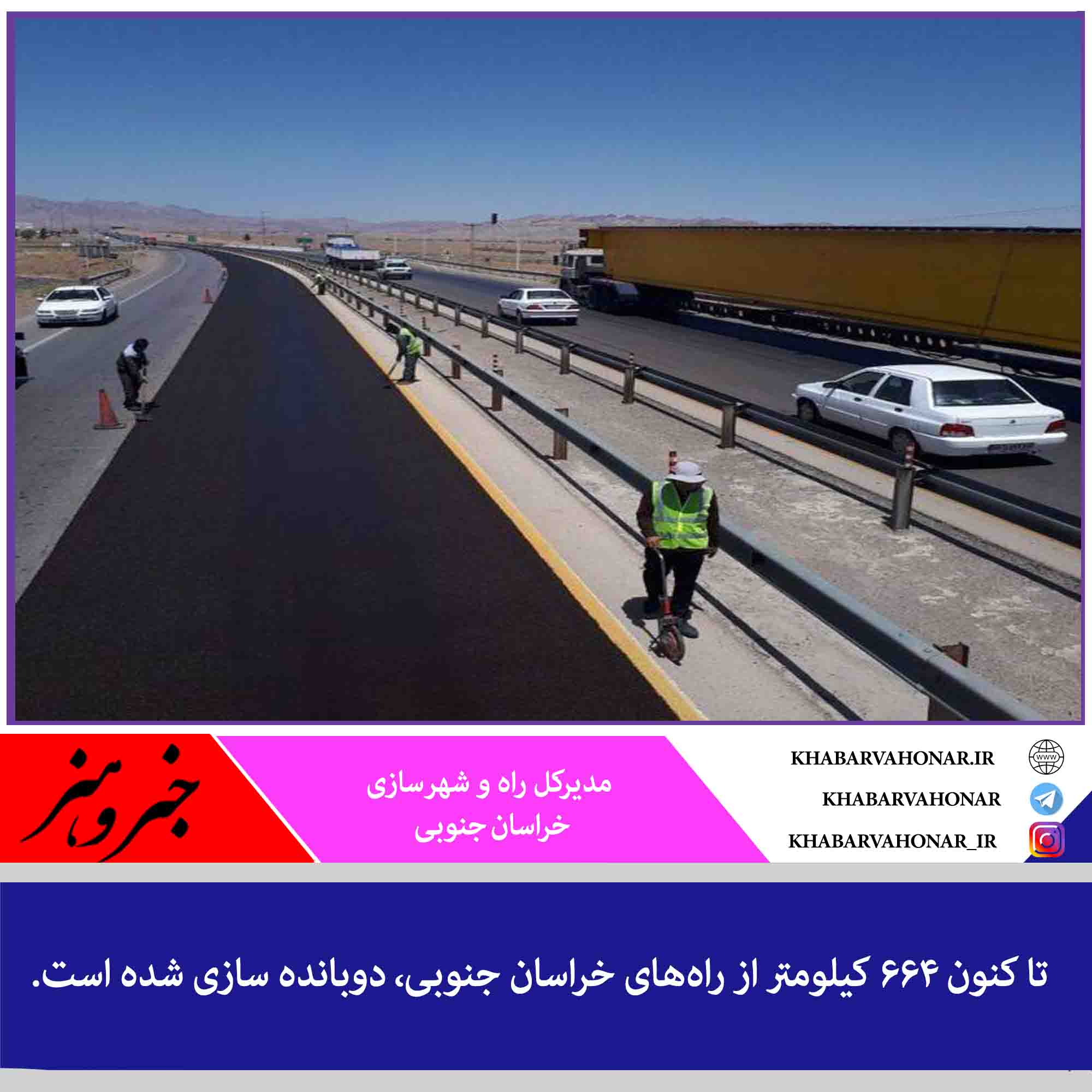 تا کنون ۶۶۴ کیلومتر از راههای خراسان جنوبی، دوبانده سازی شده است.