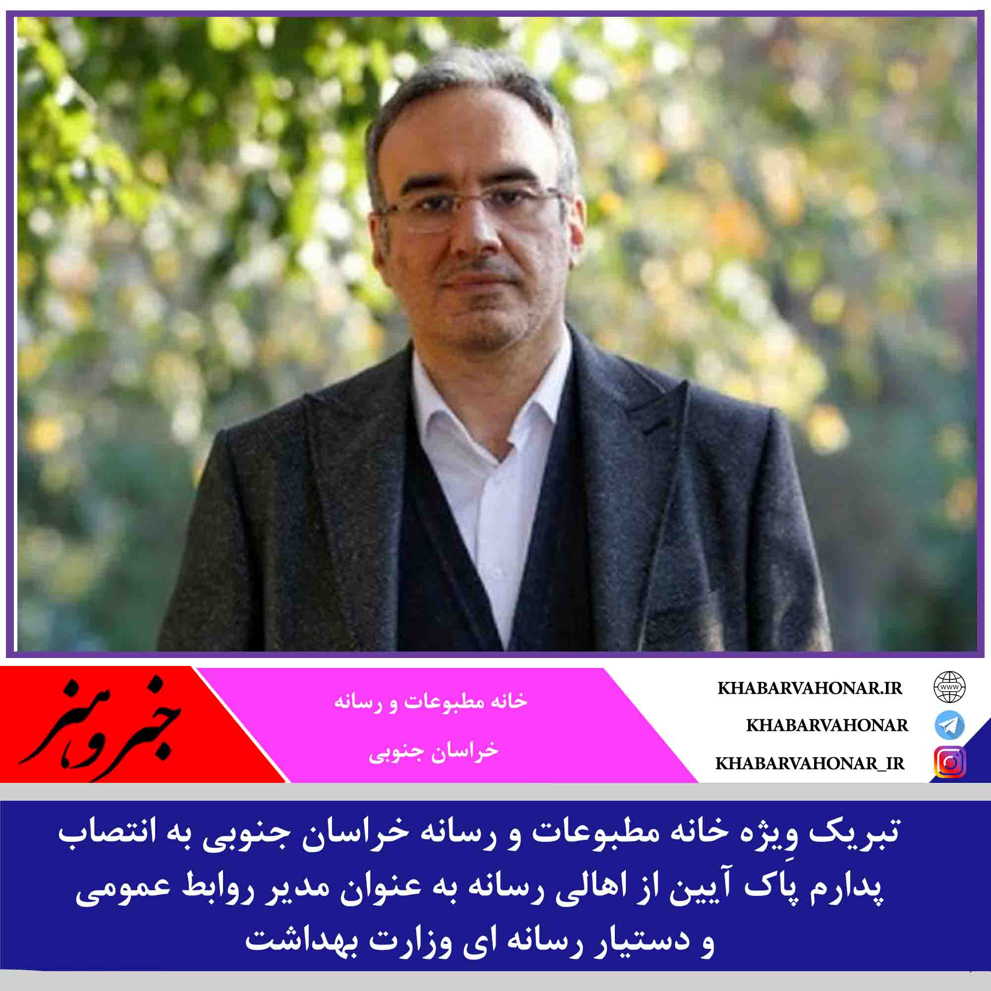 انتصاب حضرت عالی در سمت سرپرست روابط عمومی و اطلاع رسانی و دستیار رسانه ای وزارت بهداشت موجب شعف جامعه رسانه ای بوده و قطعا با حضور جناب عالی با سابقه درخشان در حوزه رسانه شاهد ارتقا کیفیت اطلاع رسانی و ارتباطات خواهیم بود.پیروز باشید.