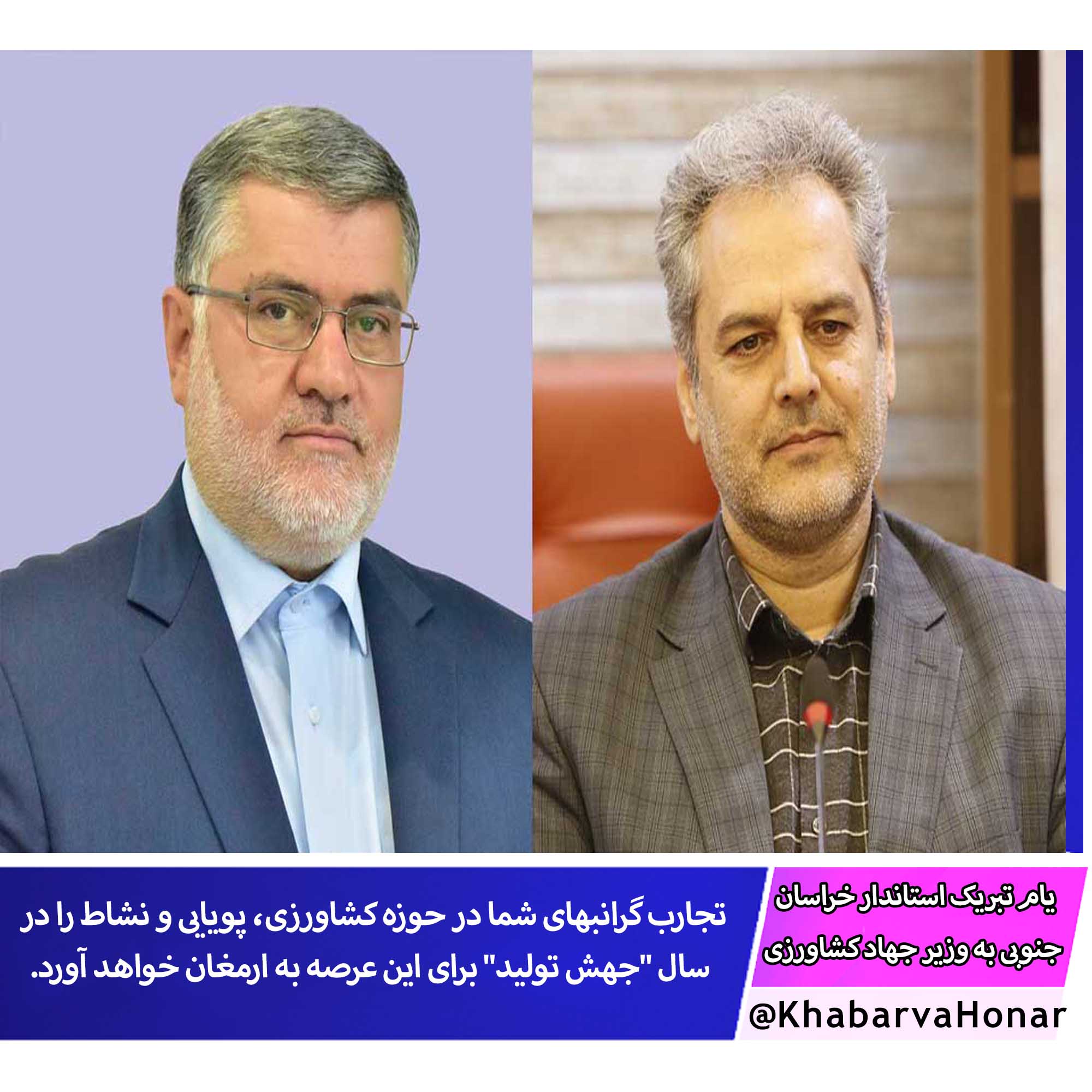 متن پیام تبریک استاندار خراسان جنوبی به وزیر جهاد کشاورزی