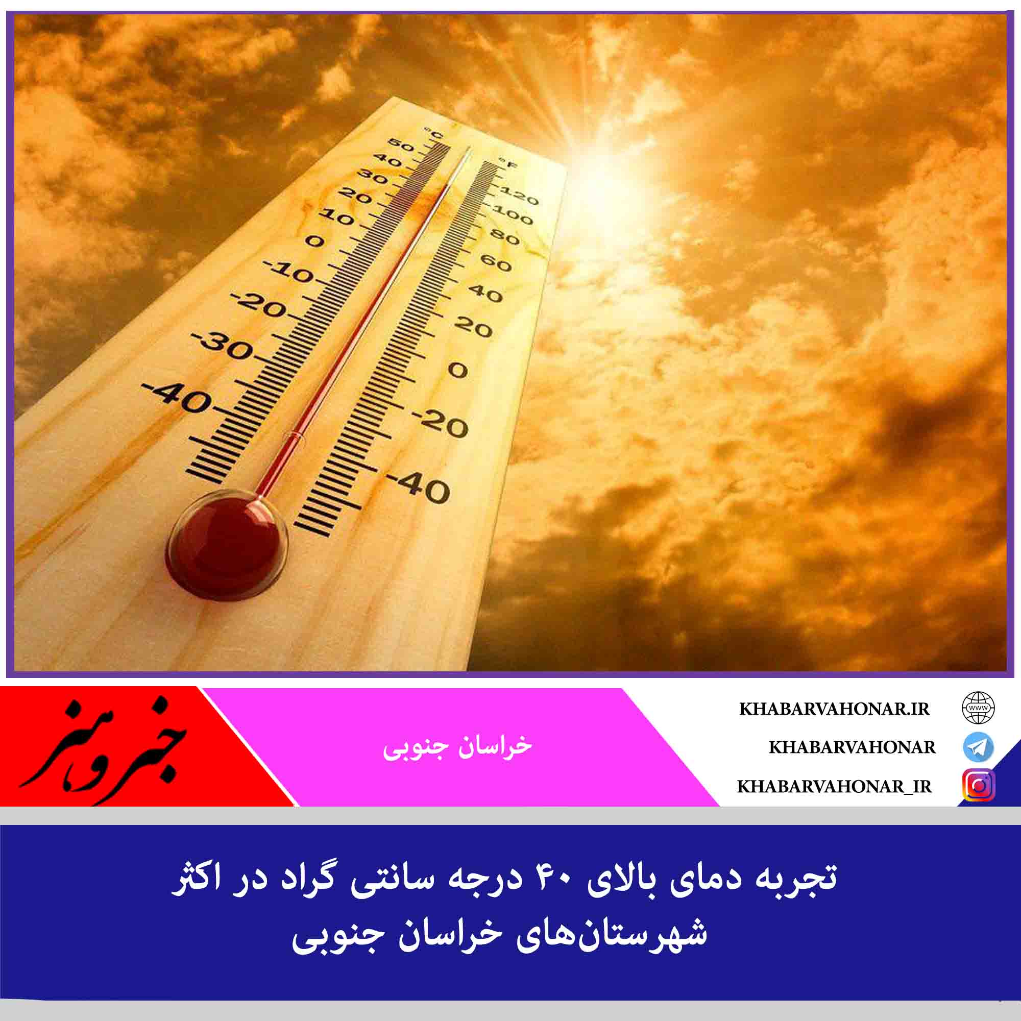 کارشناس هواشناسی خراسان جنوبی اظهار کرد: شبانه روز گذشته در اکثر شهرهای استان دمای بالای ۴۰ درجه سلسیوس ثبت شد.