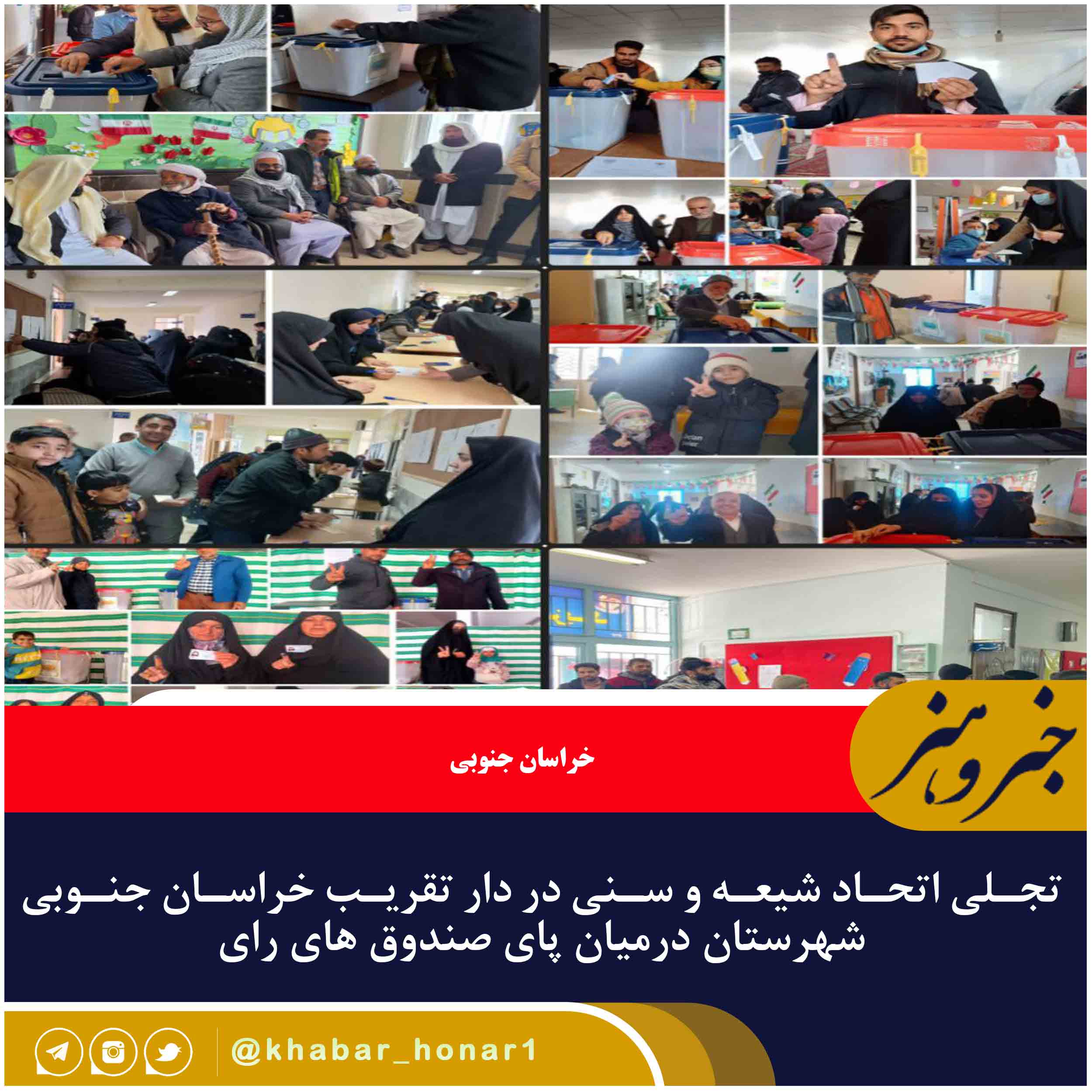 گفتنی است جامعه اهل سنت در شهرستانهای مرزی درمیان، نهبندان و زیرکوه ساکن هستند و همواره مشارکت عزتمندانه ای در همه صحنههای انقلاب و از جمله انتخابات داشتهاند.
