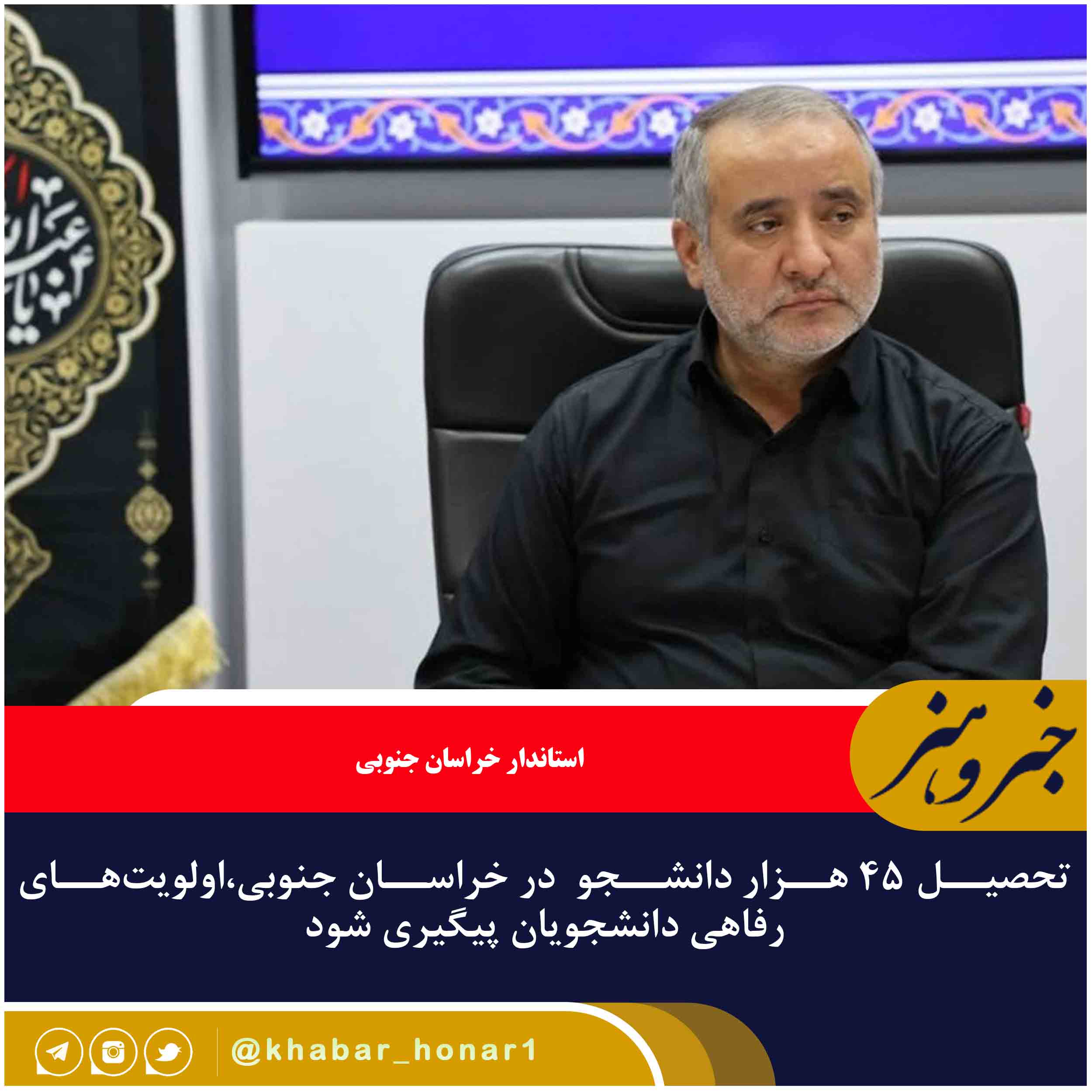 استاندار خراسان جنوبی از تحصیل ۴۵ هزار دانشجو در استان خبر داد و گفت: اولویتهای رفاهی دانشجویان باید با مدیریت دقیق و مستمر پیگیری شوند.