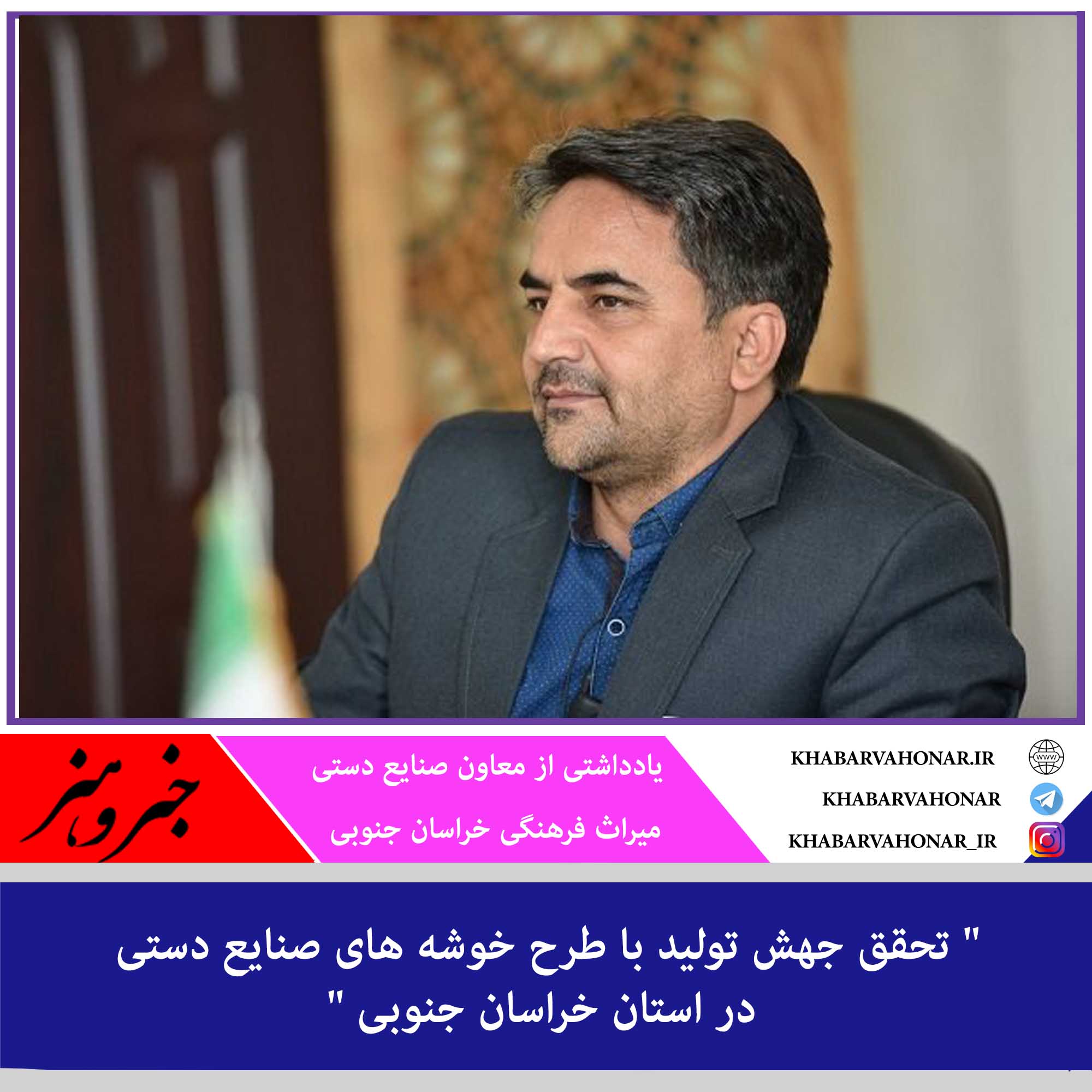 در سالی که از سوی مقام معظم رهبری به نام جهش تولید نامگذاری شده است بر هر ایرانی فعال در حوزه صنایع دستی تکلیف است که در جهت تحقق این شعار ارزشمند تلاش نماید تا تولیداتی بدیل که از دست رنج صنعتگران استان می باشد همچون سنوات گذشته سهمی بر اقتصاد ایران و ارز آوری داشته باشد و این مهم محقق گردد. استان خراسان جنوبی با ارائه طرح خوشه های صنایع دستی به استقبال سال جهش تولید رفت و باید اذعان داشت که طرح موضوع جهش تولید از سوی رهبر انقلاب ، جرقه ای بود برای ساماندهی و برنامه ریزی و ارائه این طرح ارزشمند که در سطح ملی بعنوان الگوی فراگیر از استان خراسان جنوبی معرفی و ان شالله محقق خواهد شد .