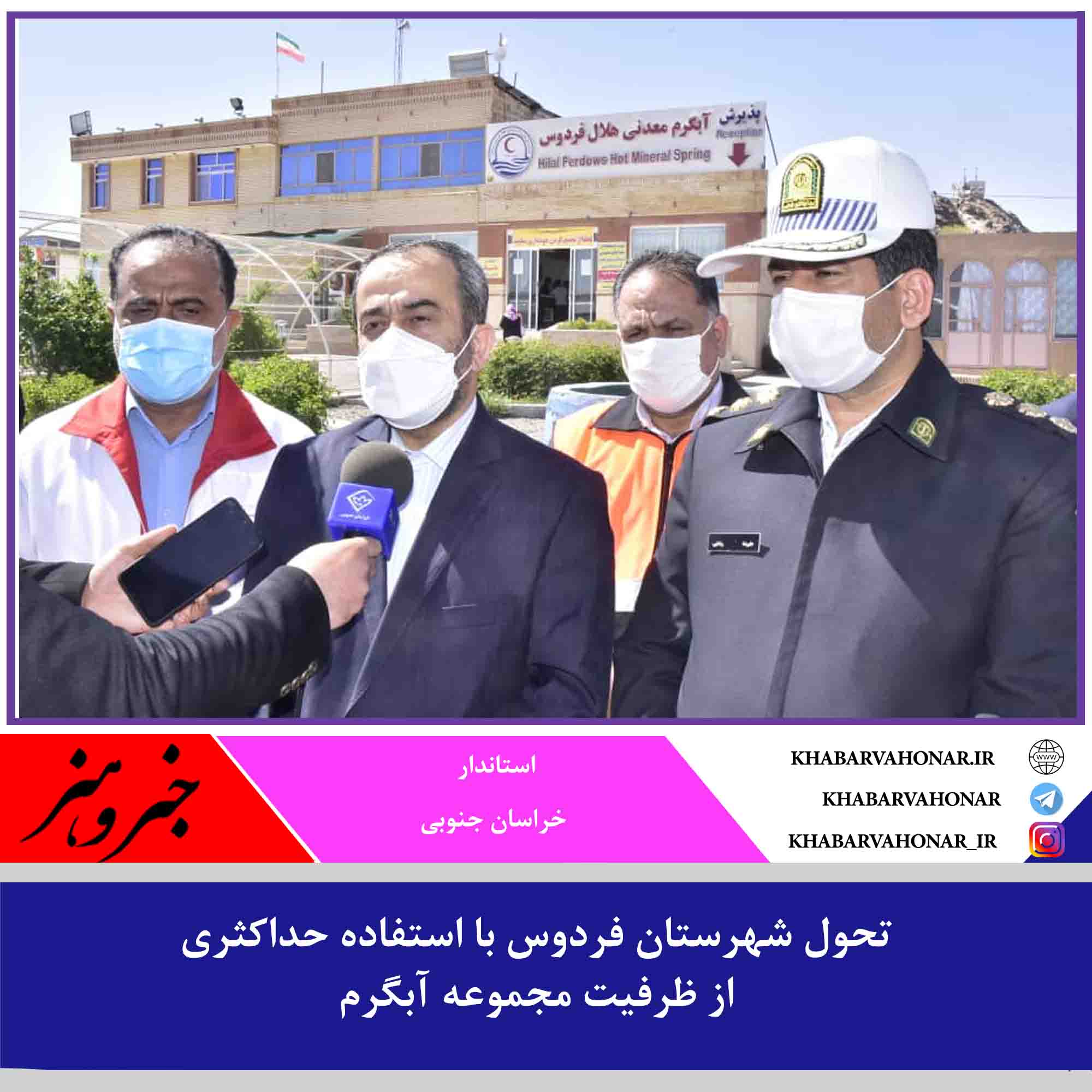 ?استاندار خراسان جنوبی گفت:استفاده حداکثری از ظرفیت آبگرم معدنی، وضعیت شهرستان فردوس را متحول می کند.