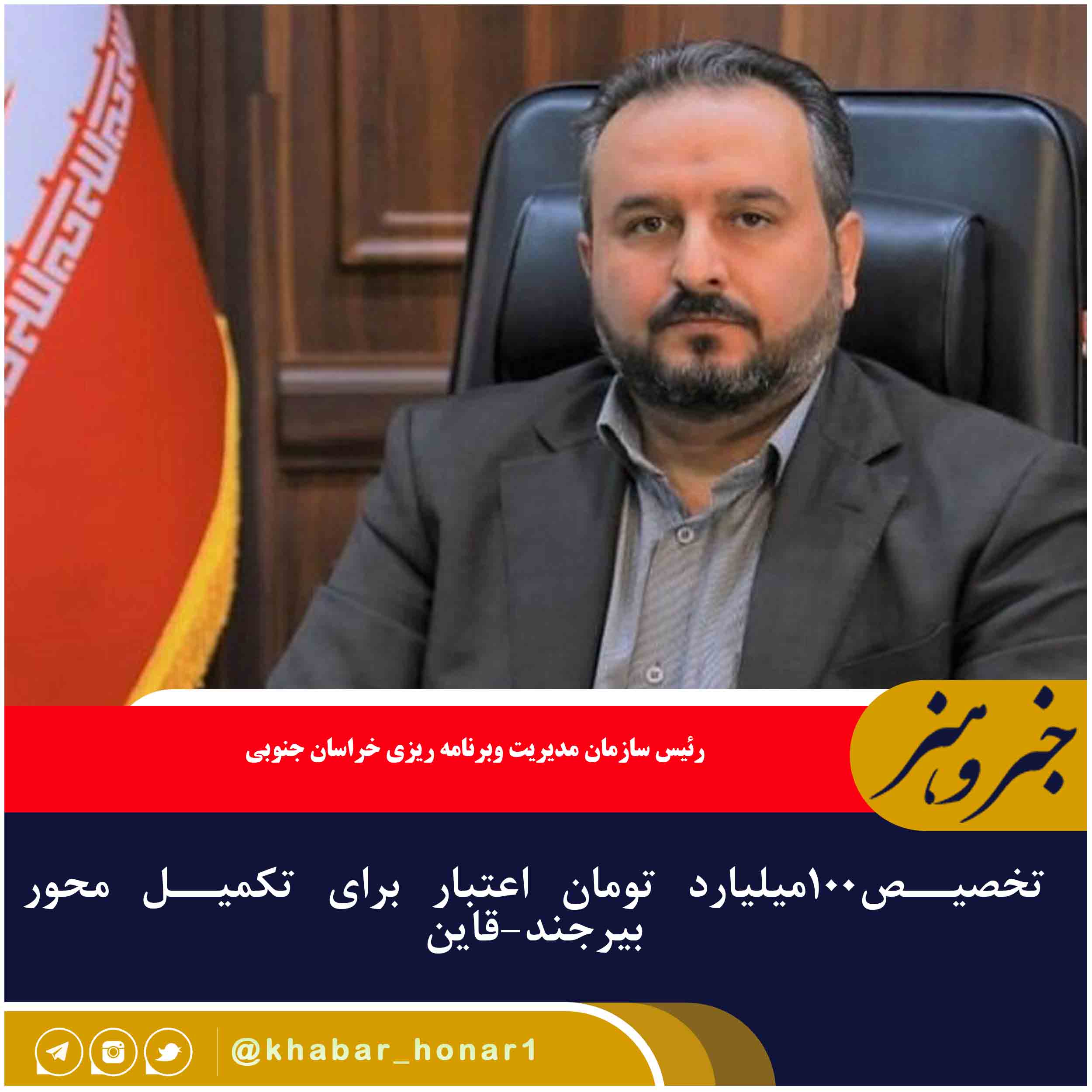 رئیس سازمان مدیریت وبرنامه ریزی خراسان جنوبی گفت: از تخصیص۱۰۰ﻣﯿﻠﯿﺎرد ﺗﻮﻣﺎن اﻋﺘﺒﺎر ﺑﺮای تکمیل ﻣﺤﻮر ﺑﯿﺮﺟﻨﺪ-ﻗﺎﯾﻦ از سوی سازمان مدیریت و برنامه ریزی کشور خبر داد.