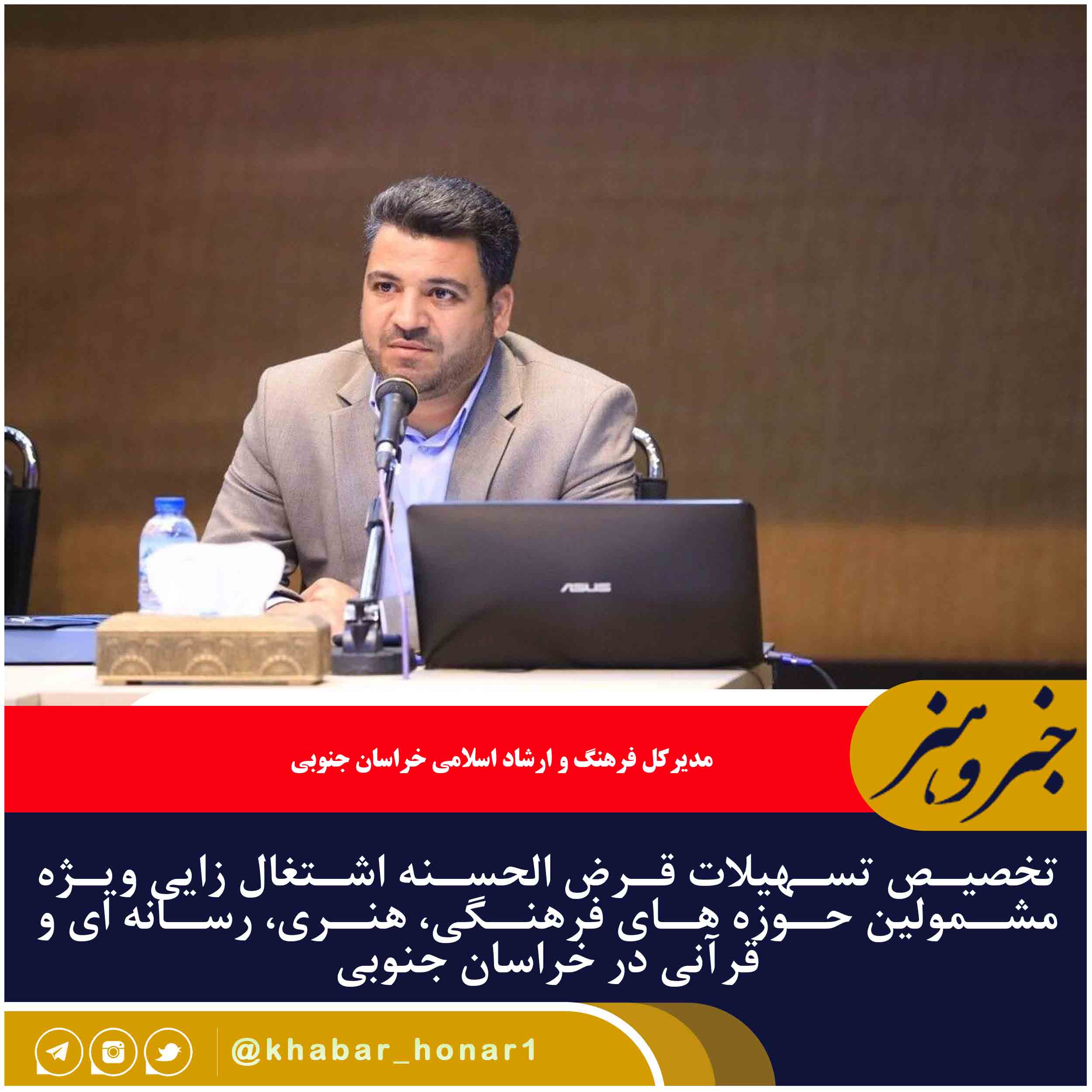 مدیرکل فرهنگ و ارشاد اسلامی خراسان جنوبی گفت: تسهیلات قرض الحسنه اشتغال زایی ویژه مشمولین حوزه های فرهنگی، هنری، رسانه ای و قرآنی با اخذ مجوز اشتغال خانگی میسور گردید.، علی فرخنده با اشاره به تخصیص تسهیلات قرض الحسنه اشتغال زایی، اظهار کرد: یکی از اقداماتی که در راستای حمایت از این قبیل فعالیت ها صورت پذیرفته، هماهنگی به منظور “معرفی اخذ وام” با شرایطی آسان، اقساط طولانی مدت و حداقل سود بانکی ممکن است.
