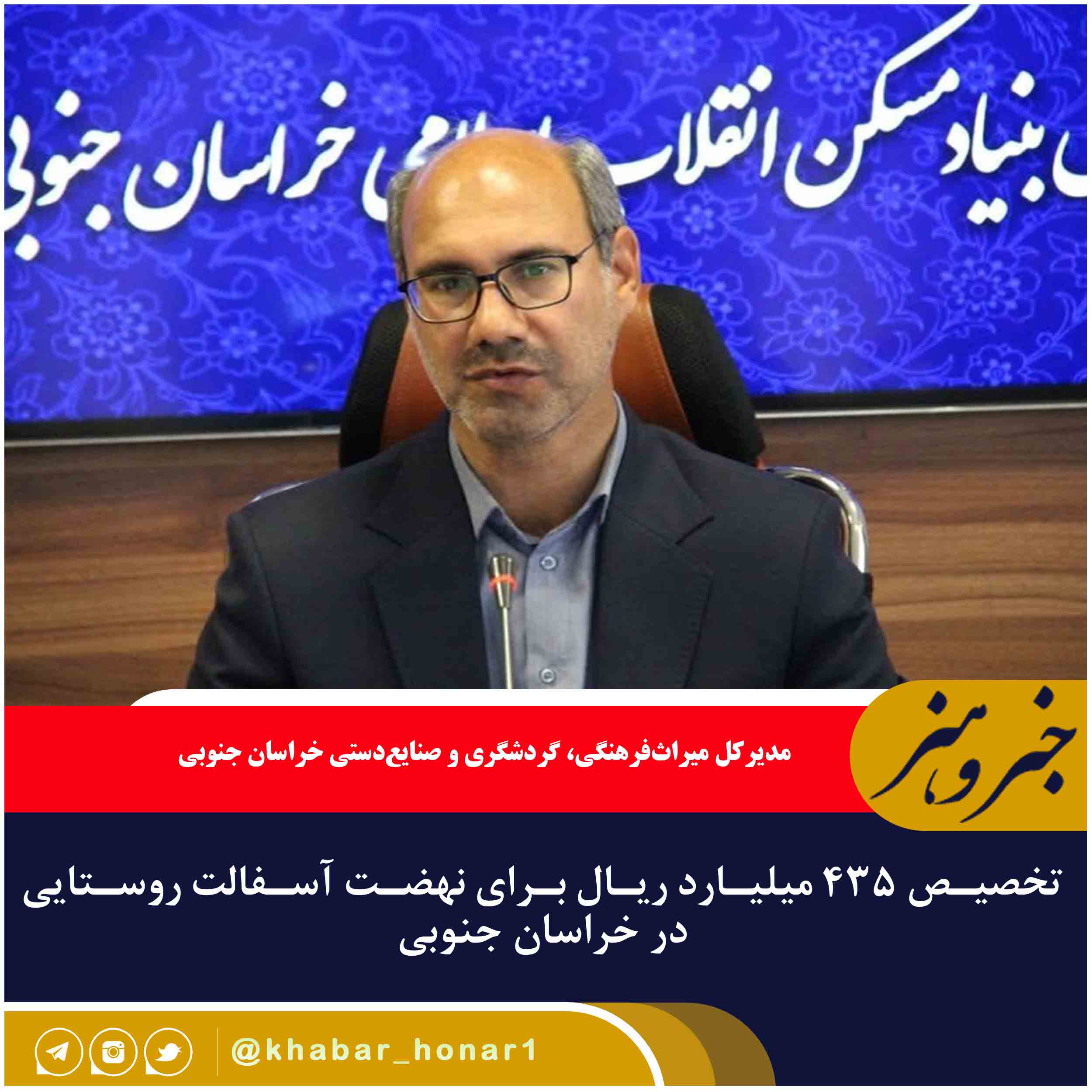 مدیرکل بنیاد مسکن انقلاب اسلامی خراسان جنوبی گفت: عملیات نهضت آسفالت معابر روستایی در استان از هفته گذشته آغاز شده و برای این طرح ۴۳۵ میلیارد ریال اعتبار تخصیص یافته است.