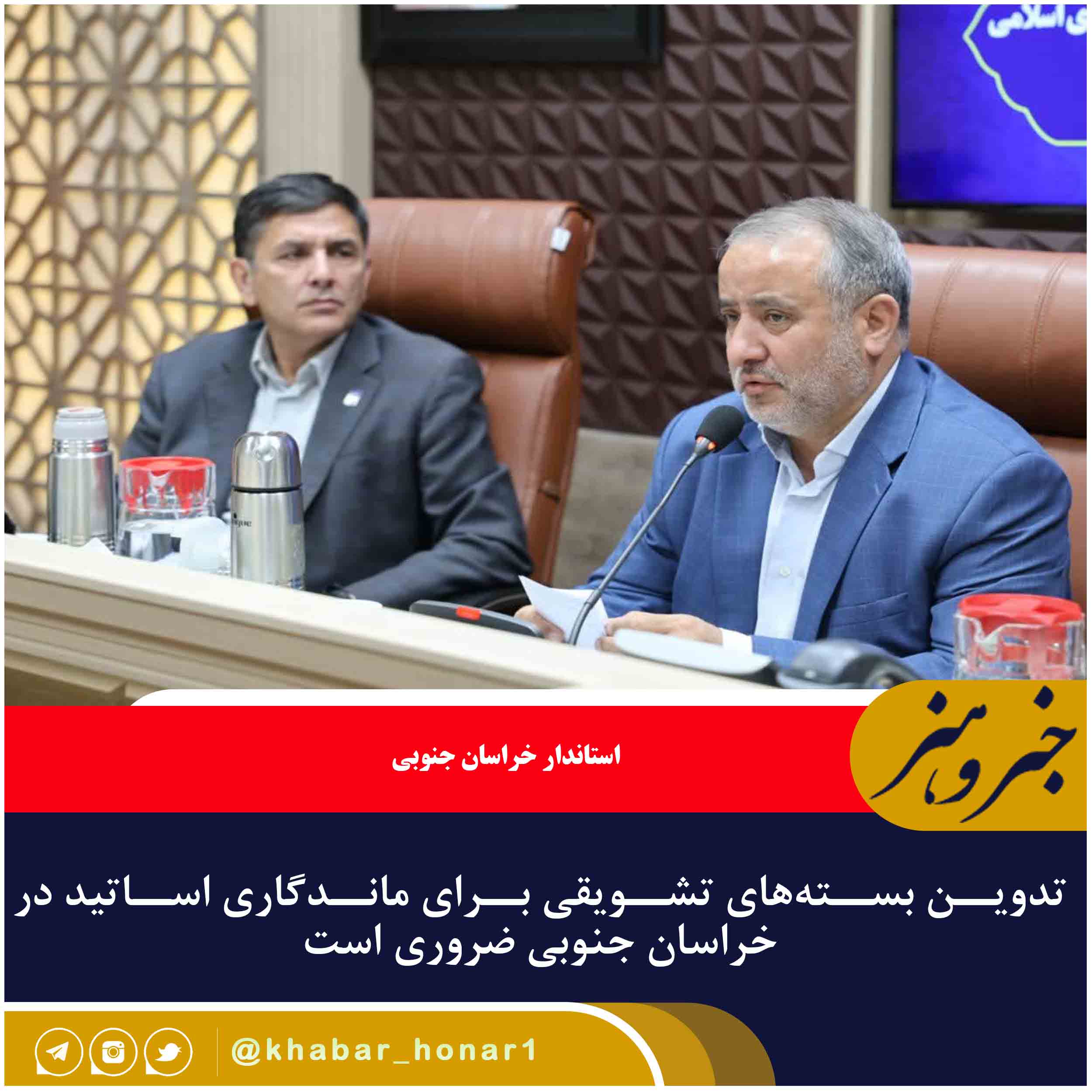 🔹استاندار خراسان جنوبی با بیان اینکه توسعه علمی و فرهنگی استان نیازمند حفظ و تقویت سرمایه انسانی است، گفت: برای ماندگاری اساتید و نخبگان، بستههای تشویقی ویژهای در دستور کار قرار گیرد.