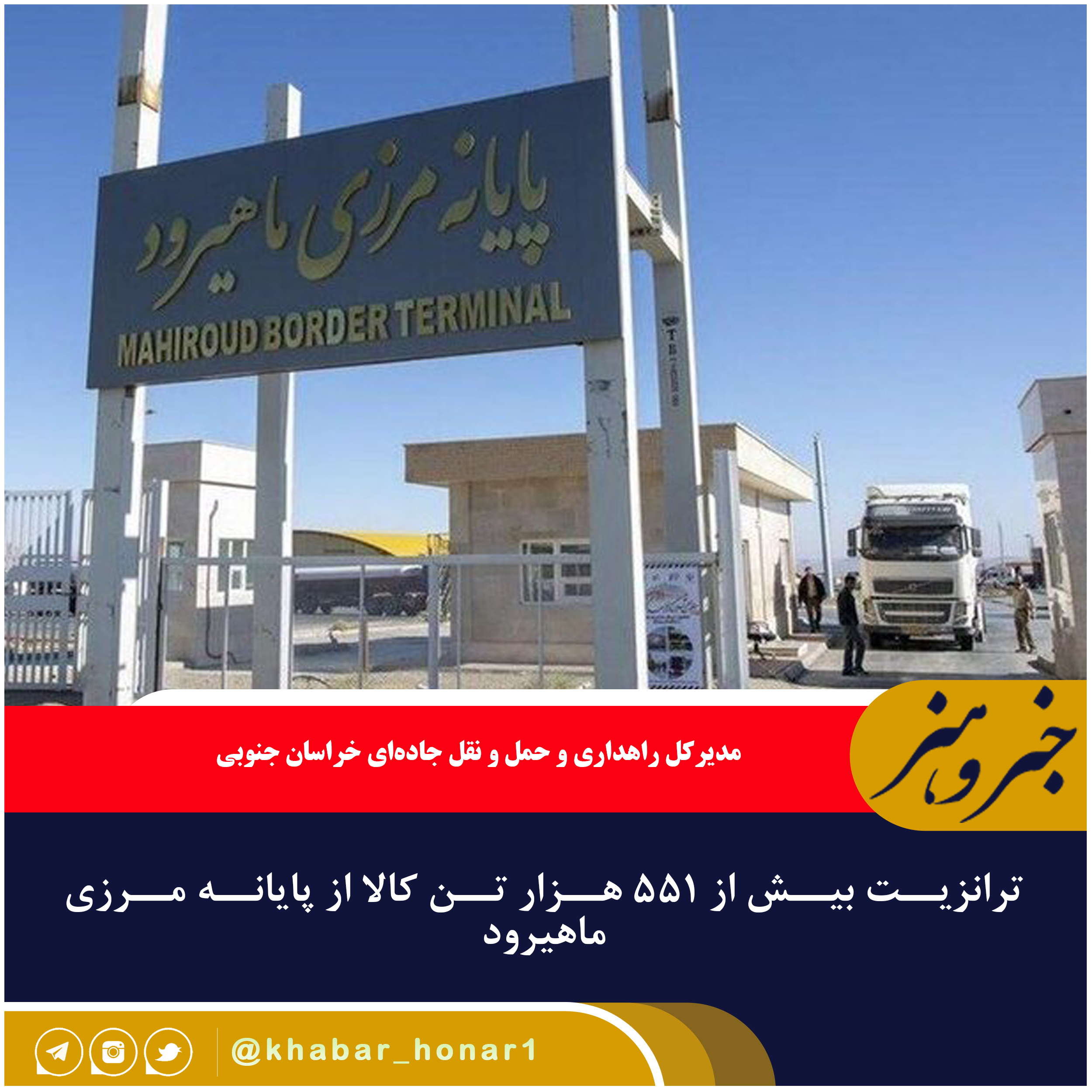 مدیرکل راهداری و حمل و نقل جادهای خراسان جنوبی از ترانزیت بیش از ۵۵۱ هزار تن کالا از پایانه مرزی ماهیرود از ابتدای امسال خبر داد.