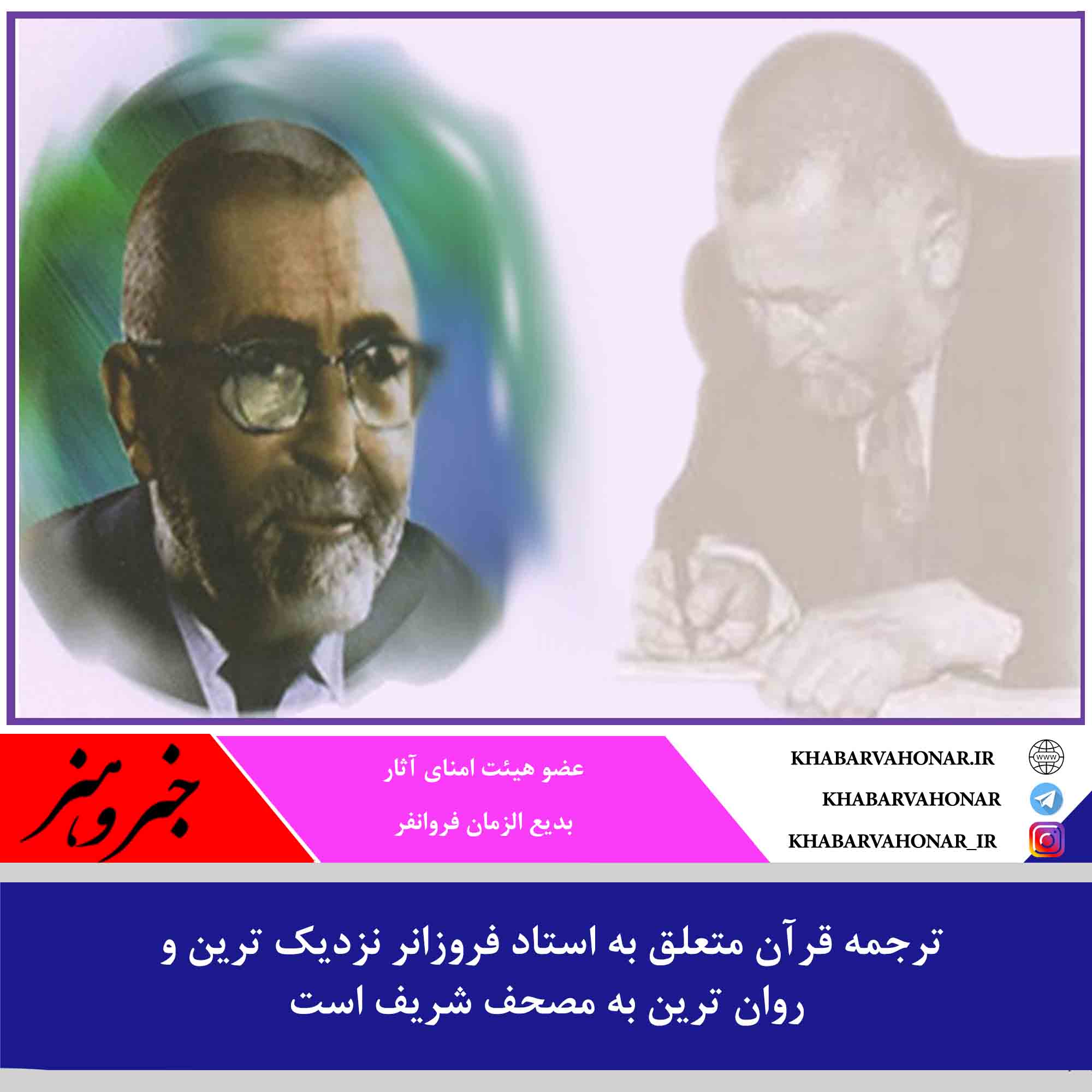 ترجمه قرآن متعلق به استاد فروزانر نزدیک ترین و روان ترین به مصحف شریف است.