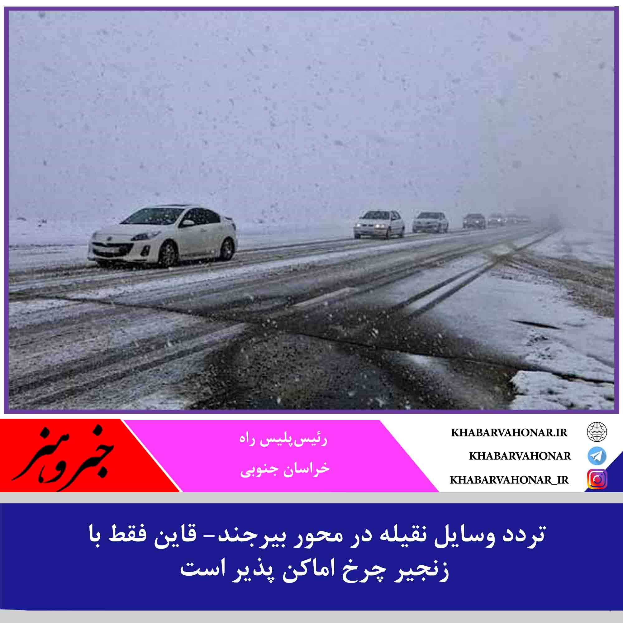 تردد وسایل نقیله در محور بیرجند- قاین فقط با زنجیر چرخ اماکن پذیر است