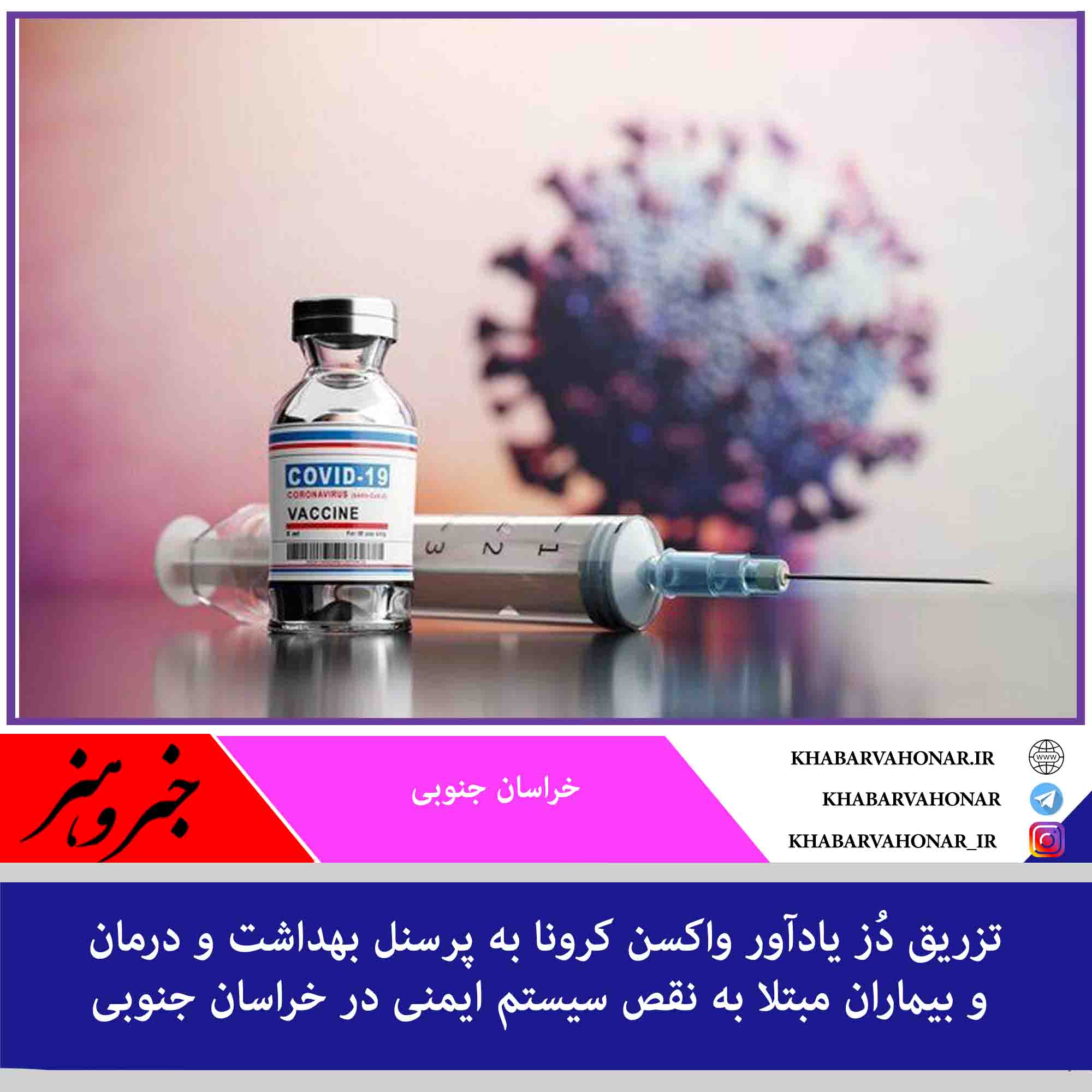 دبیر ستاد دانشگاهی پیشگیری و کنترل کرونا ویروس در خراسان جنوبی از تزریق دُز یادآور واکسن کرونا به پرسنل بهداشت و درمان و بیماران مبتلا به نقص سیستم ایمنی خبر داد.