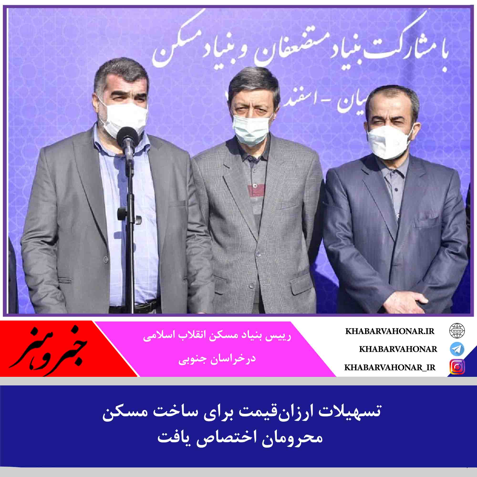 رییس بنیاد مسکن انقلاب اسلامی گفت: با همکاری دولت و بنیاد مستضعفان برای ساخت ۲۰ هزار واحد مسکن محرومان در کشور تسهیلات ارزانقیمت، کمک بلاعوض و مصالح مورد نیاز اختصاص یافته است.