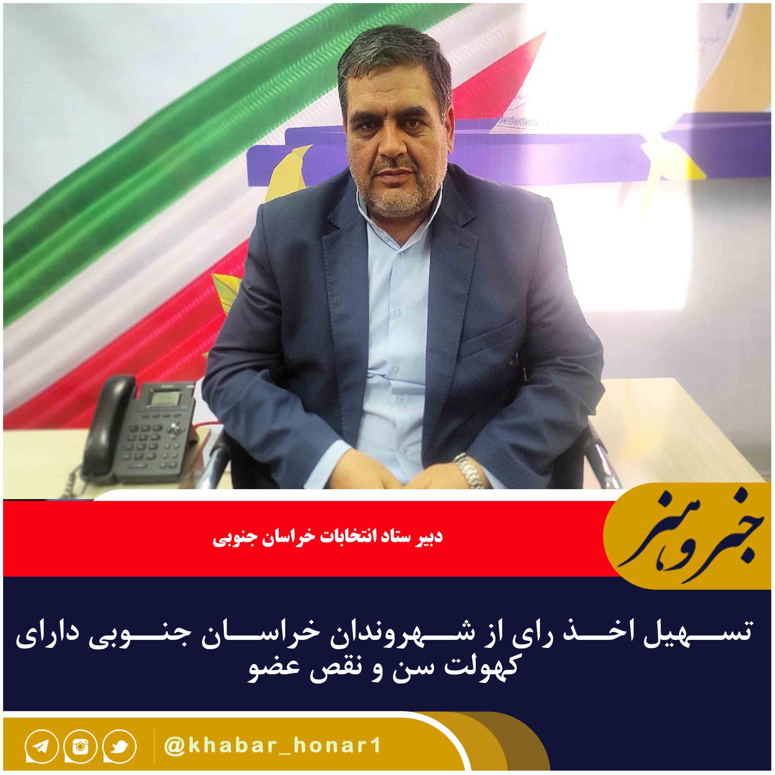 دبیر ستاد انتخابات خراسان جنوبی گفت:در راستای اخد رای از همشهریانی که به علت نقص عضو و کهولت سن امکان حضور در شعب را ندارند گروه هایی در پنج شعبه با ویلچر آماده خدمت رسانی هستند.