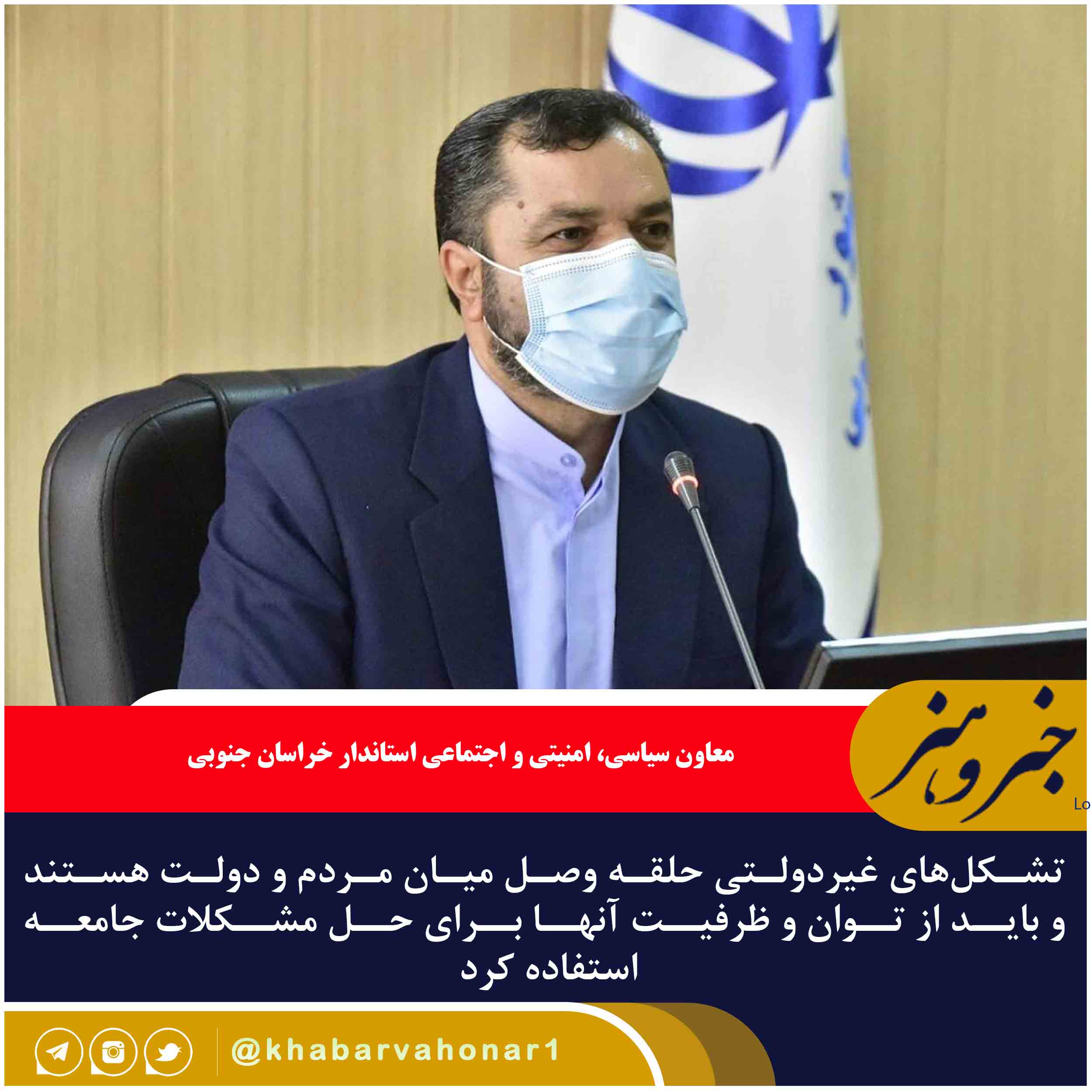معاون سیاسی، امنیتی و اجتماعی استاندار خراسان جنوبی گفت: تشکلهای غیردولتی حلقه وصل میان مردم و دولت هستند و باید از توان و ظرفیت آنها برای حل مشکلات جامعه استفاده کرد.
