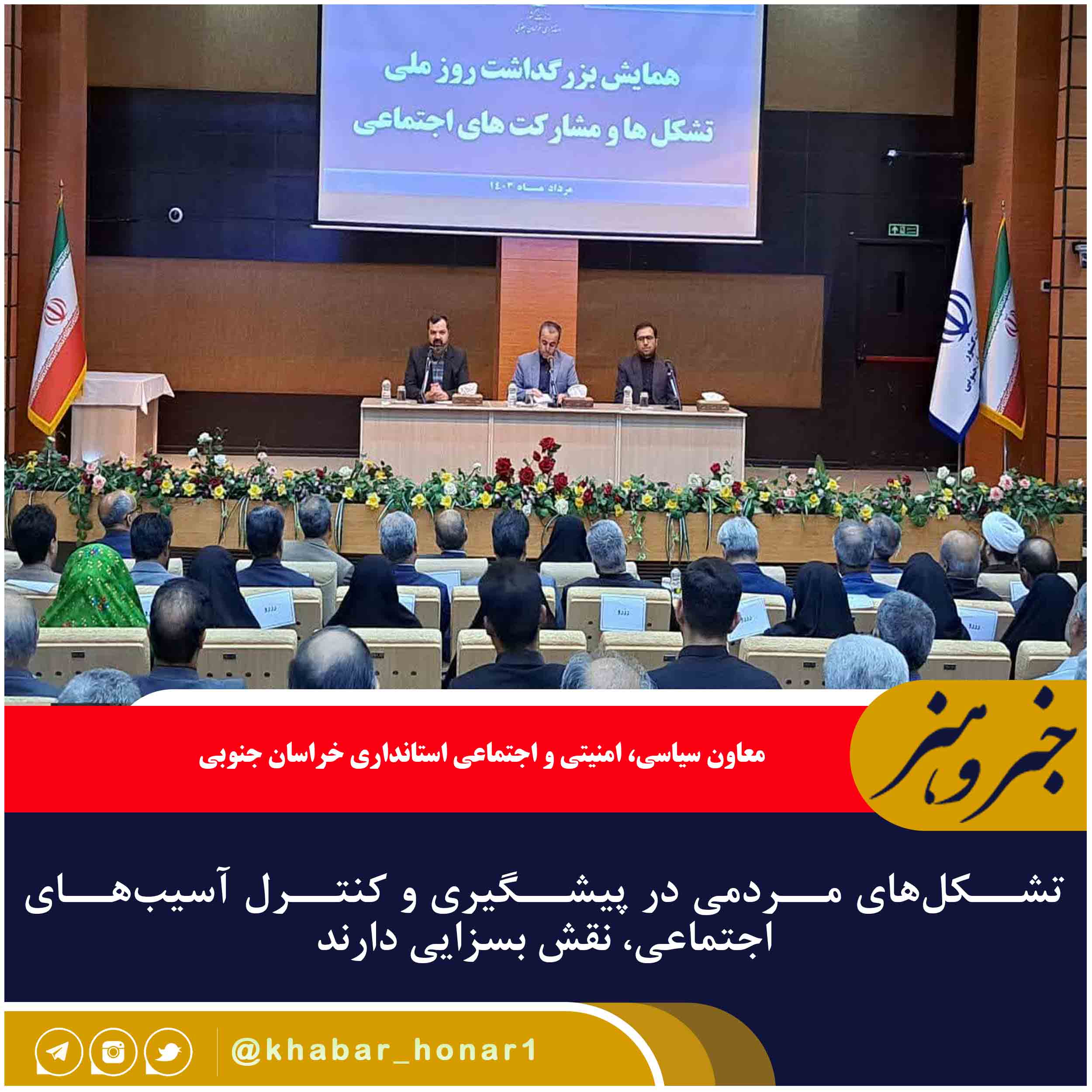 🔹معاون سیاسی، امنیتی و اجتماعی استانداری خراسان جنوبی گفت: تشکل های مردمی در پیشگیری و کنترل آسیبهای اجتماعی، نقش بسزایی دارند.