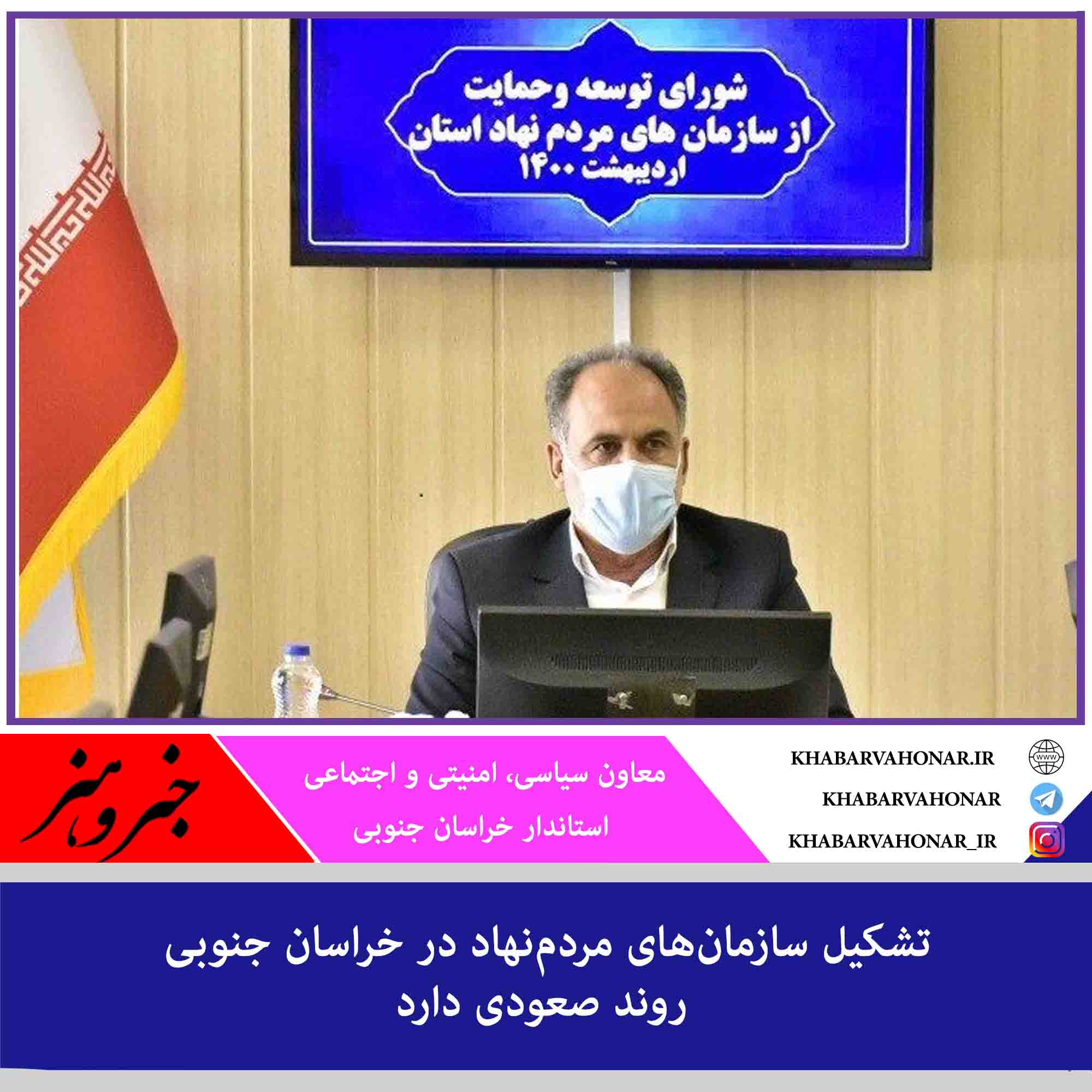 معاون سیاسی، امنیتی و اجتماعی استاندار خراسان جنوبی گفت: تشکیل سازمانهای مردمنهاد در بسیاری از شهرستانهای استان، روند صعودی و رو به رشد دارد.